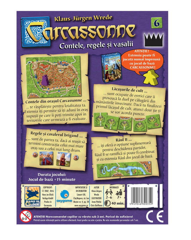 Carcassonne - Extensia 6: Contele, regele si vasalii (RO) poate fi jucata numai impreuna cu jocul de baza Carcassonne! In plus, puteti utiliza aceasta extensie si in combinatie cu alte extensii Carcassonne.