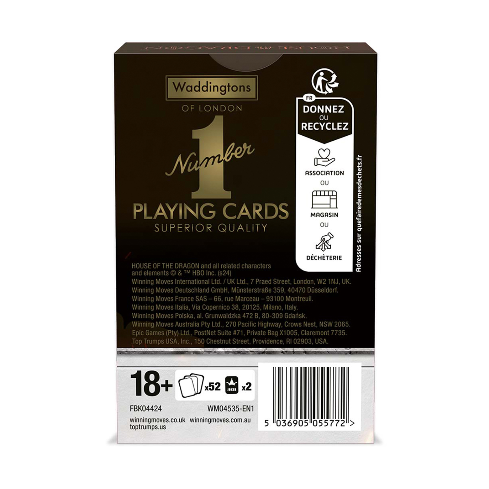 Pachetul contine 52 de Carti de joc House of Dragon, plus 2 Jokeri, fiind astfel versatil si potrivit pentru aproape orice joc de carti.