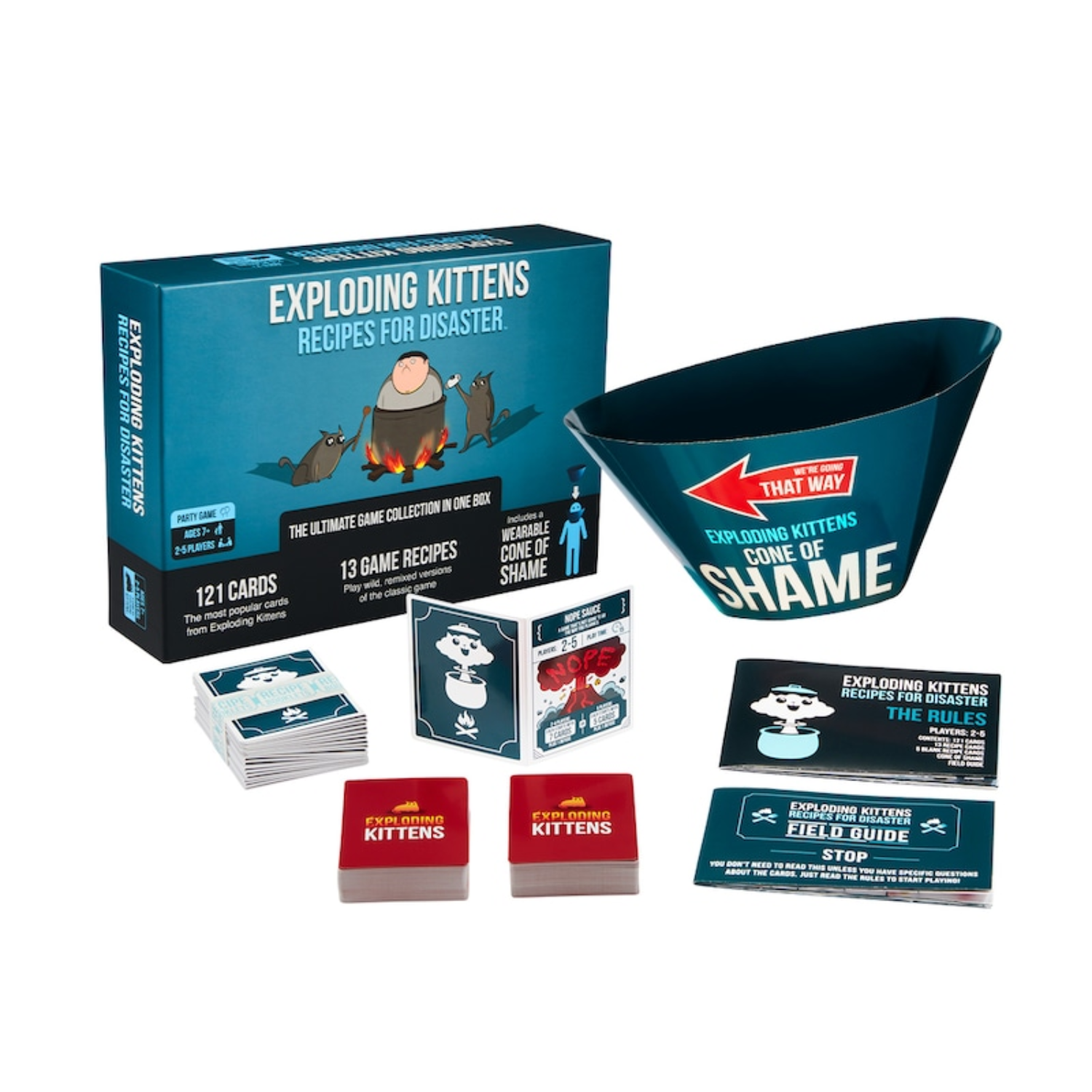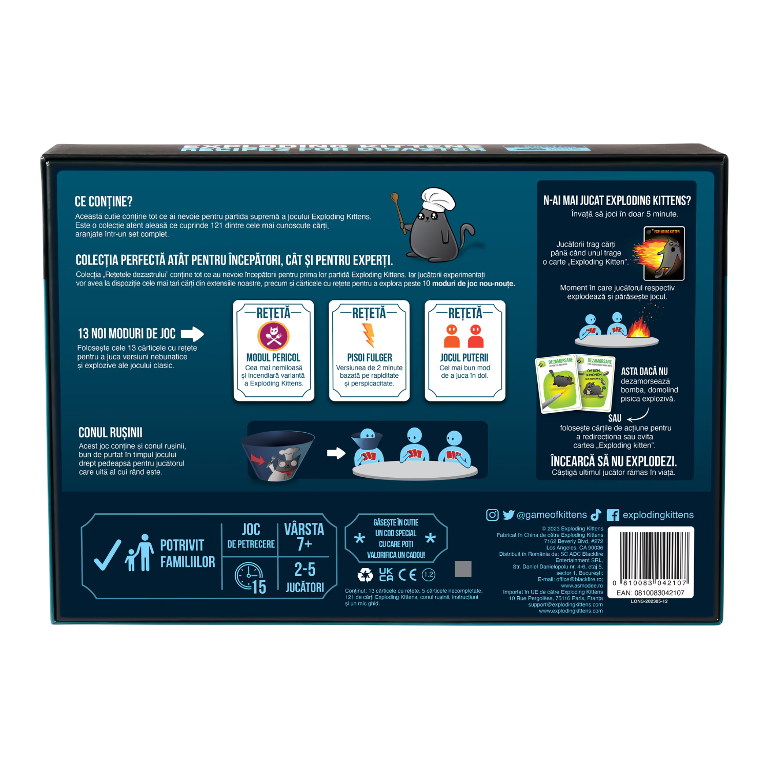 Exploding Kittens: Retetele Dezastrului (RO) este editia perfecta pentru cei care vor sa se arunce direct in actiune! Cu 121 de carti si 13 retete diferite de joc, acest set ofera o varietate de moduri in care poti experimenta nebunia Exploding Kittens. Fie ca esti veteran sau nou-venit in universul exploziv al pisicilor, acest joc iti ofera tot ce ai nevoie pentru partide pline de ras si tensiune.