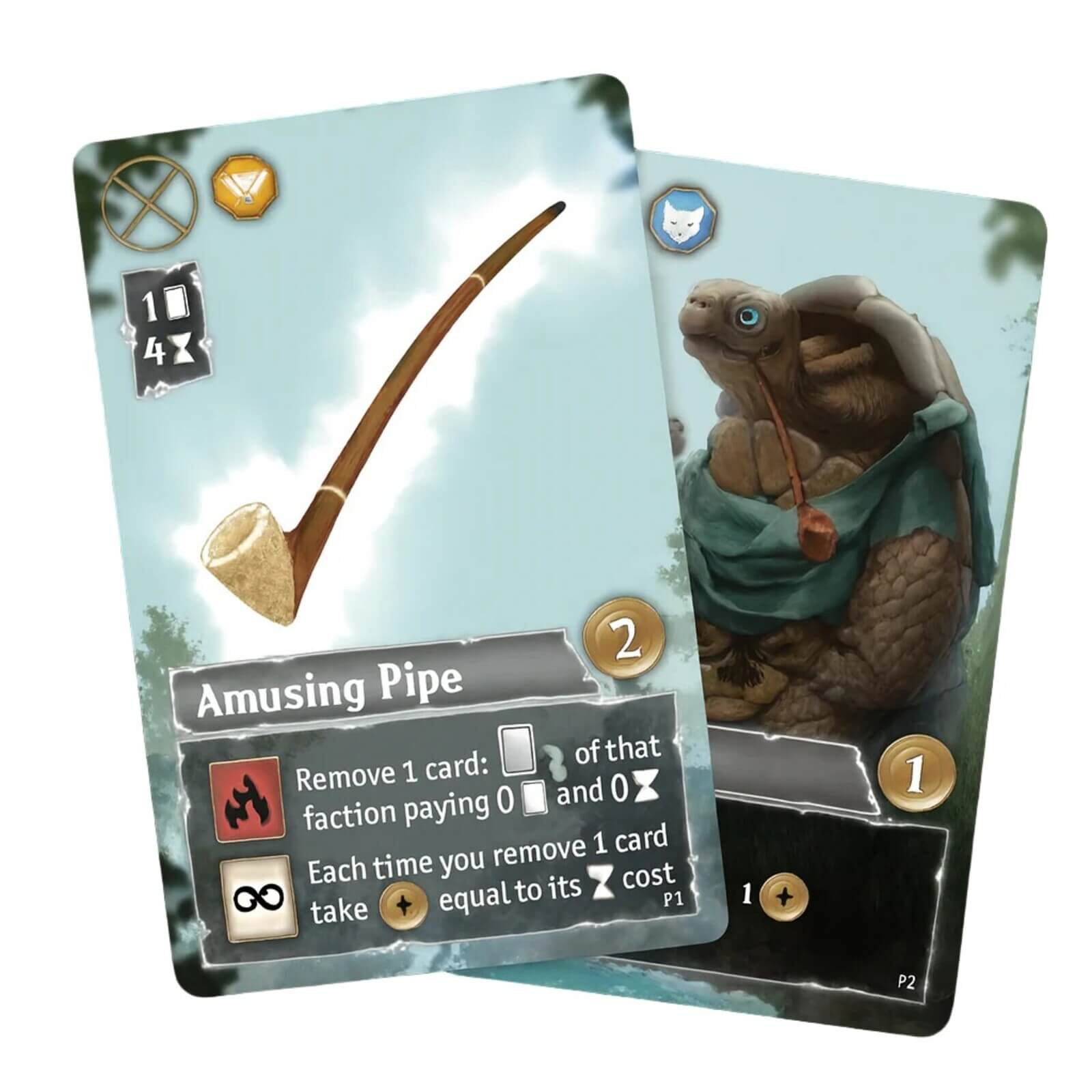 In Echoes of Time Extra Characters - Extensie (EN), aceste doua carti se integreaza in jocul de baza si ofera abilitati speciale: Amusing Pipe iti permite sa elimini carti din joc pentru a invoca altele fara cost si sa castigi puncte de victorie, in timp ce Elderly Sage functioneaza ca un wildcard pentru simbolurile de flacara si iti ofera puncte suplimentare atunci cand este activata, adaugand noi posibilitati tactice in fiecare runda.