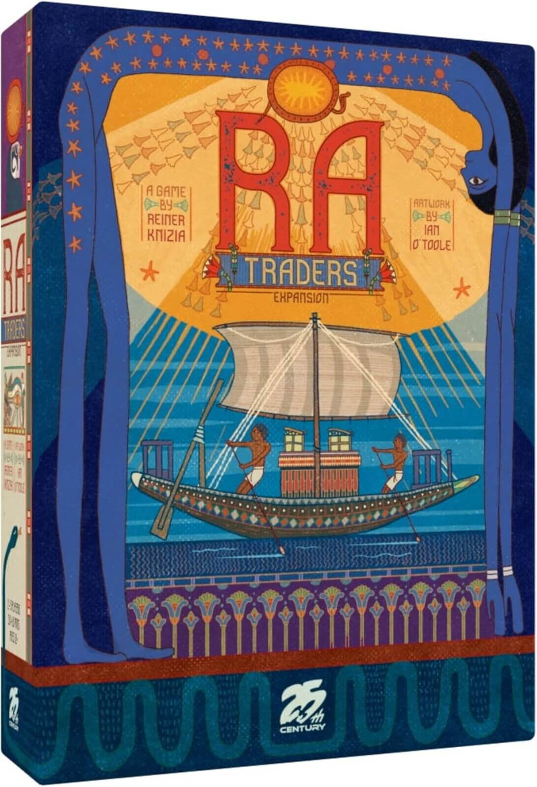 In RA: Traders, jucatorii folosesc noile componente pentru a trimite vase pe Nil, activand actiuni de comert si colectare de bunuri. Trader tiles si docks boards adauga optiuni tactice suplimentare in timpul rundelor, permitand accesul la resurse care pot influenta scorarea finala. Extensia se integreaza natural in fluxul jocului RA, fara a creste semnificativ complexitatea regulilor.