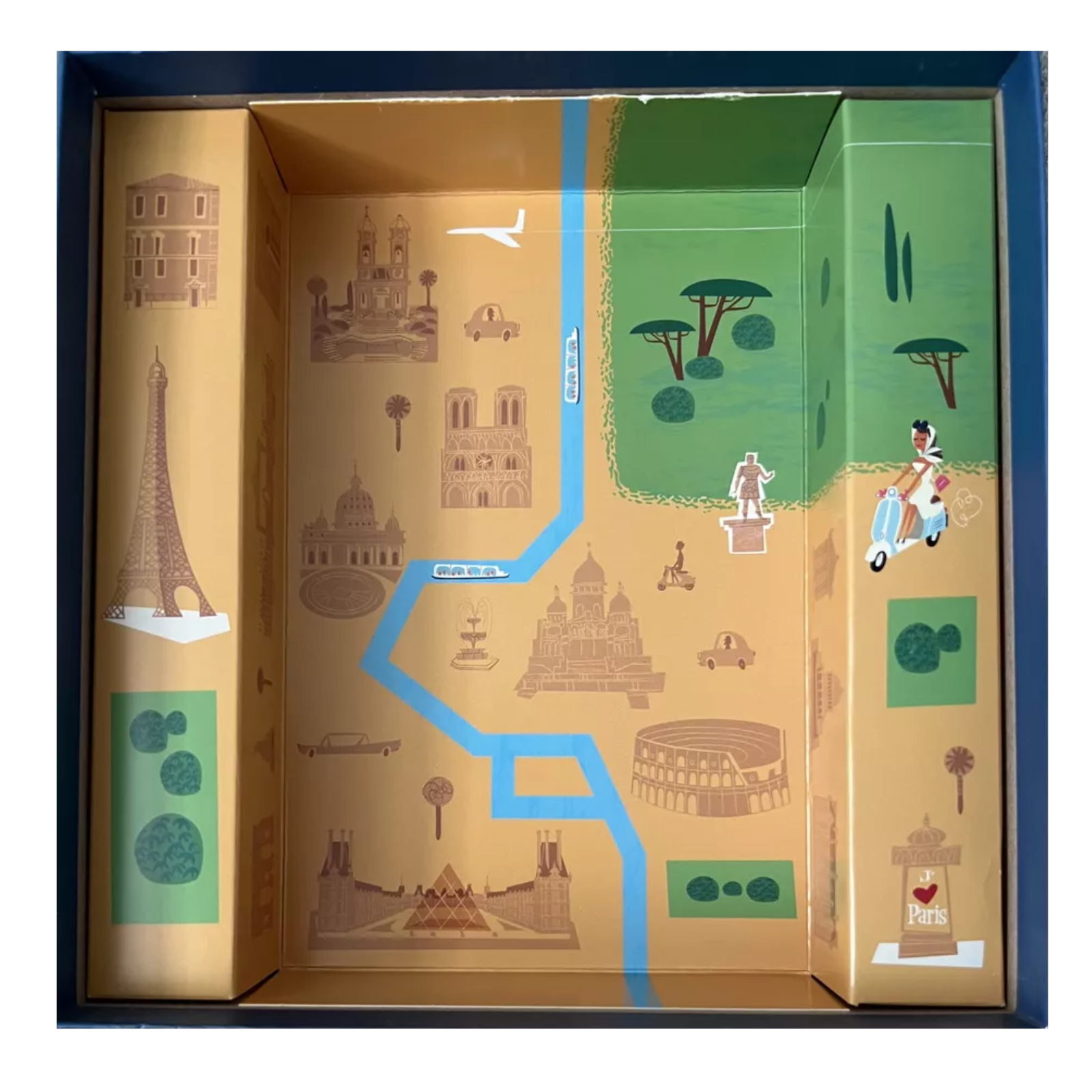 - O tabla centrala cu harti pe doua fete: Paris si Roma.