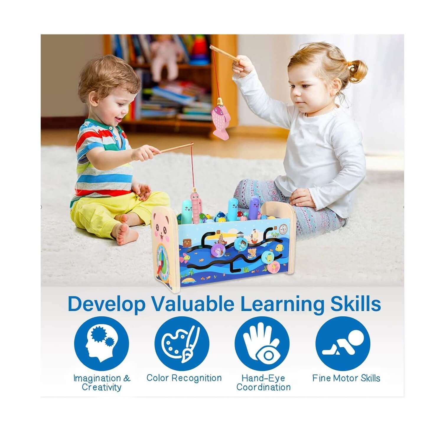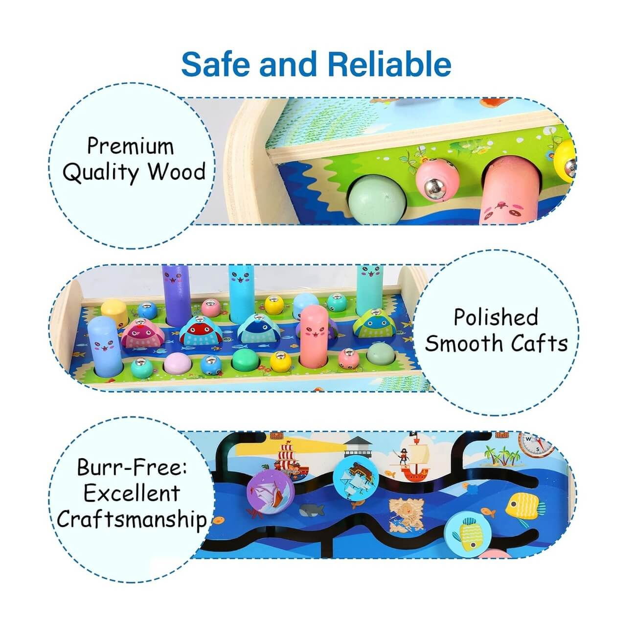 Toate aceste jucarii educative sunt special create pentru cei mici. Piesele sunt adaptate pentru mainile lor mici, finisajele sunt cat se poate de precise pentru a nu se rani, iar culorile sunt vii pentru a le capta atentia.