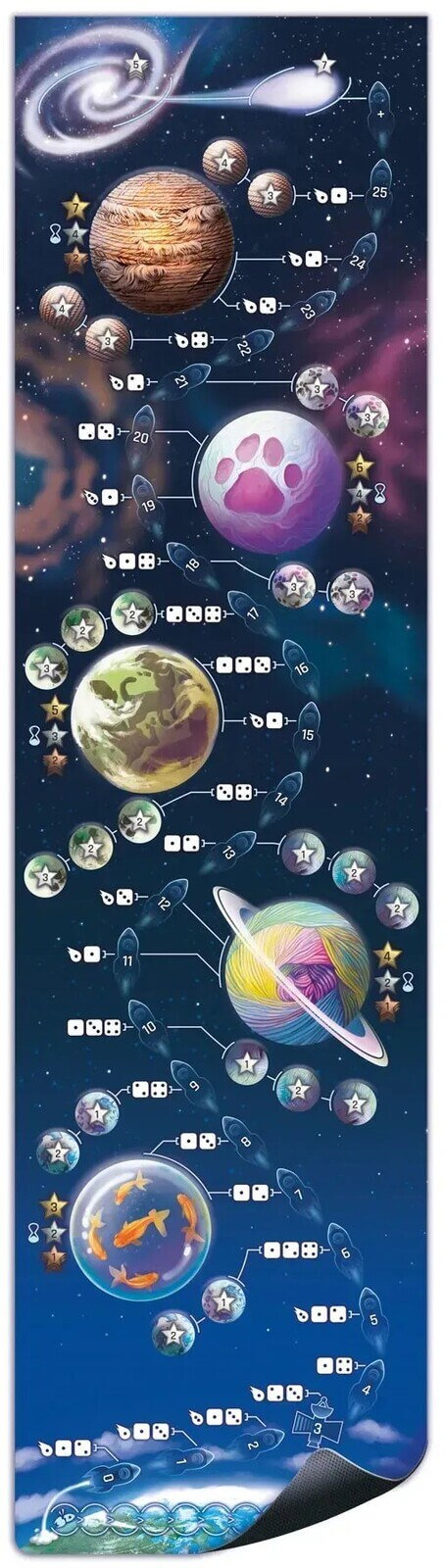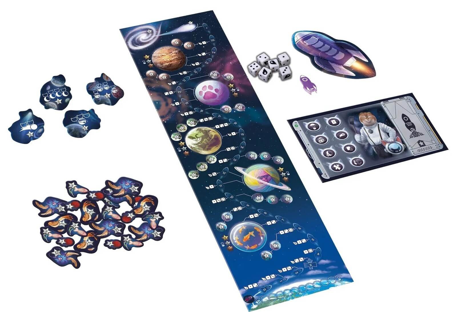 Ilustratiile simpatice, tema originala cu pisici astronaut si mecanica de tip push-your-luck transforma fiecare expeditie intr-o aventura amuzanta si tensionata.