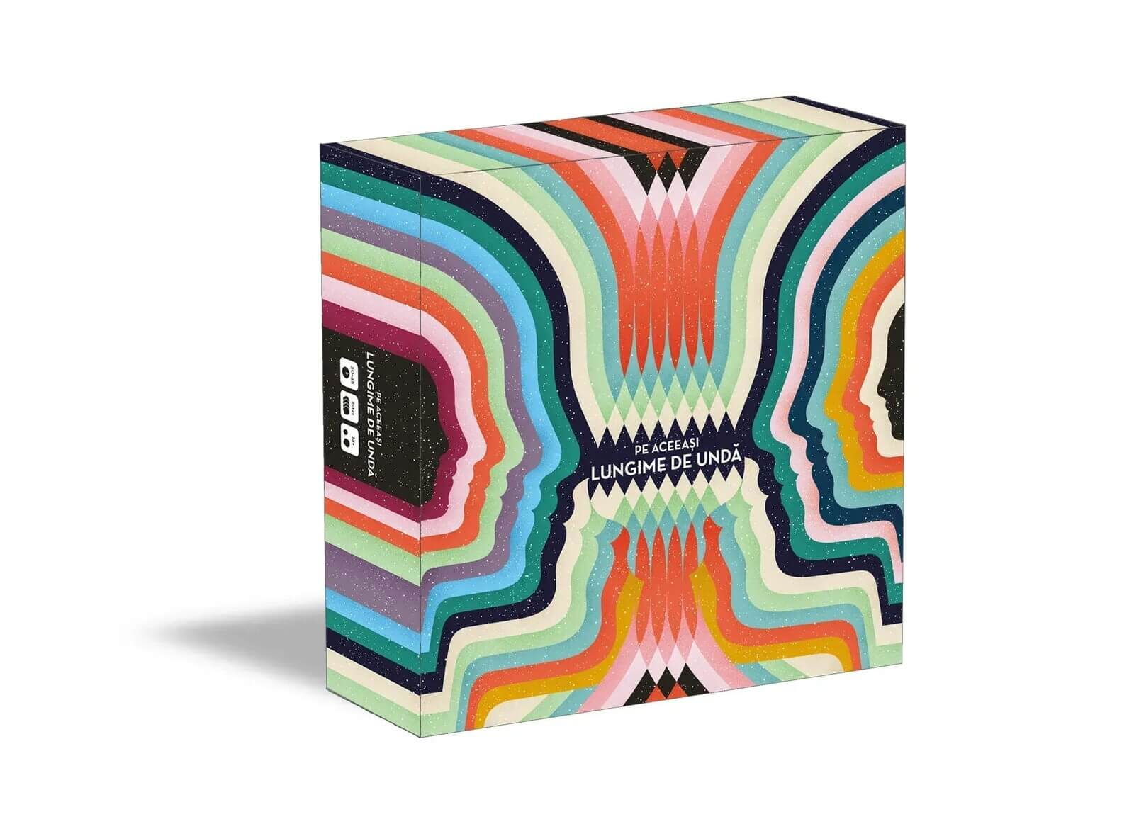 Pe aceeasi lungime de unda (Wavelength) (RO) este un party game extrem de amuzant despre intuitie, comunicare si sincronizare mentala. Jucatorii trebuie sa ghiceasca unde se afla o tinta ascunsa pe un spectru intre doua concepte opuse, bazandu-se doar pe un indiciu oferit de coechipierul lor.