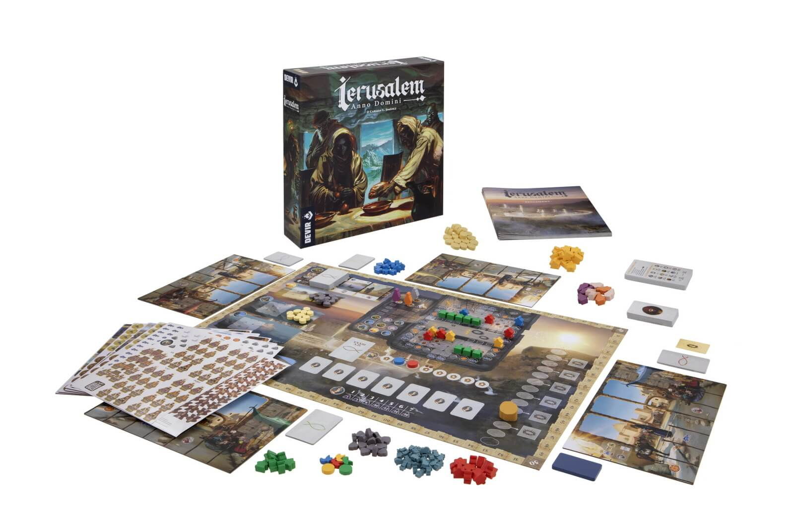 Obiectivul principal al jocului Ierusalem (EN) este de a aduce cat mai multi adepti la Cina cea de Taina. Pentru a face acest lucru, trebuie sa ii trimiti pe acestia in diferite locatii de pe tabla de joc precum: muntele, desertul, piata, templul sau lacul. In schimb, vei primi paine, peste, pietre, denari sau cartonase care iti vor permite sa faci mai multe actiuni. In plus, poti asculta o pilda, schimba locurile de la masa sau face o favoare. Actiunile se intampla in timp ce rabdarea Sanhedrinului se epuizeaza. In acel moment finalul se apropie.
