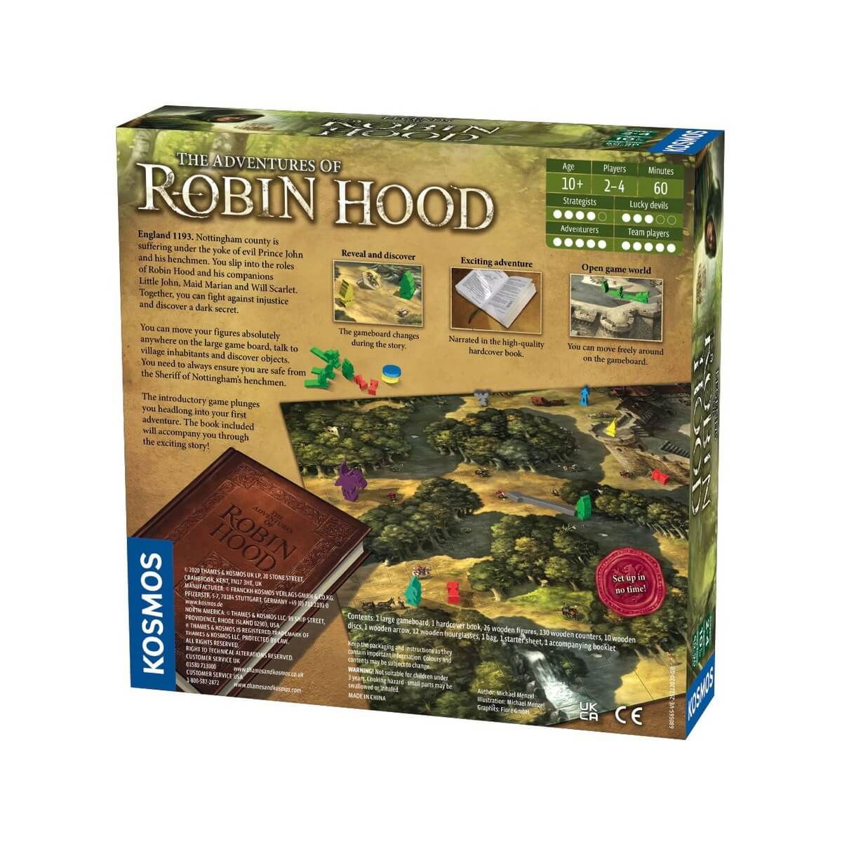 The Adventures of Robin Hood (EN) este conceput si ilustrat de Michael Menzel, creatorul premiat al seriei de jocuri Legends of Andor. Tabla de joc frumos ilustrată se schimba pe parcursul jocului, iar superba carte de povesti are coperti cartonate, 216 de pagini si acoperire din piele artificiala. Aceasta nareaza povestea si avanseaza jocul.