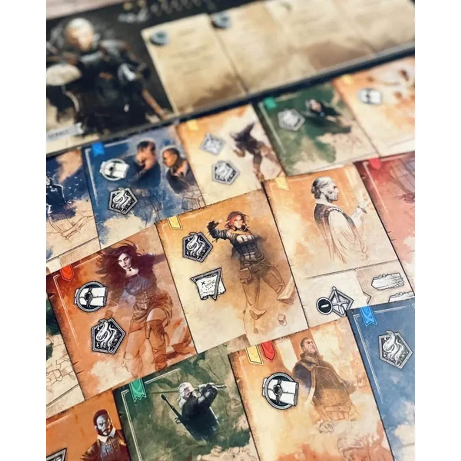 The Witcher: Path of Destiny (EN) ofera un continut extrem de bogat, cu peste 300 de carti si tokenuri, incluzand 5 seturi complete de jucator pentru Geralt, Yennefer, Dandelion, Ciri si Vesemir, fiecare cu player board, standee de personaj, pachet extins de 68 carti Action, carti de start, carti Tale Aid, carti Side Quest, tokenuri de abilitati, destin si progres, markeri de experienta si tokenuri tematice pentru explorare, lupta, magie si diplomatie.
