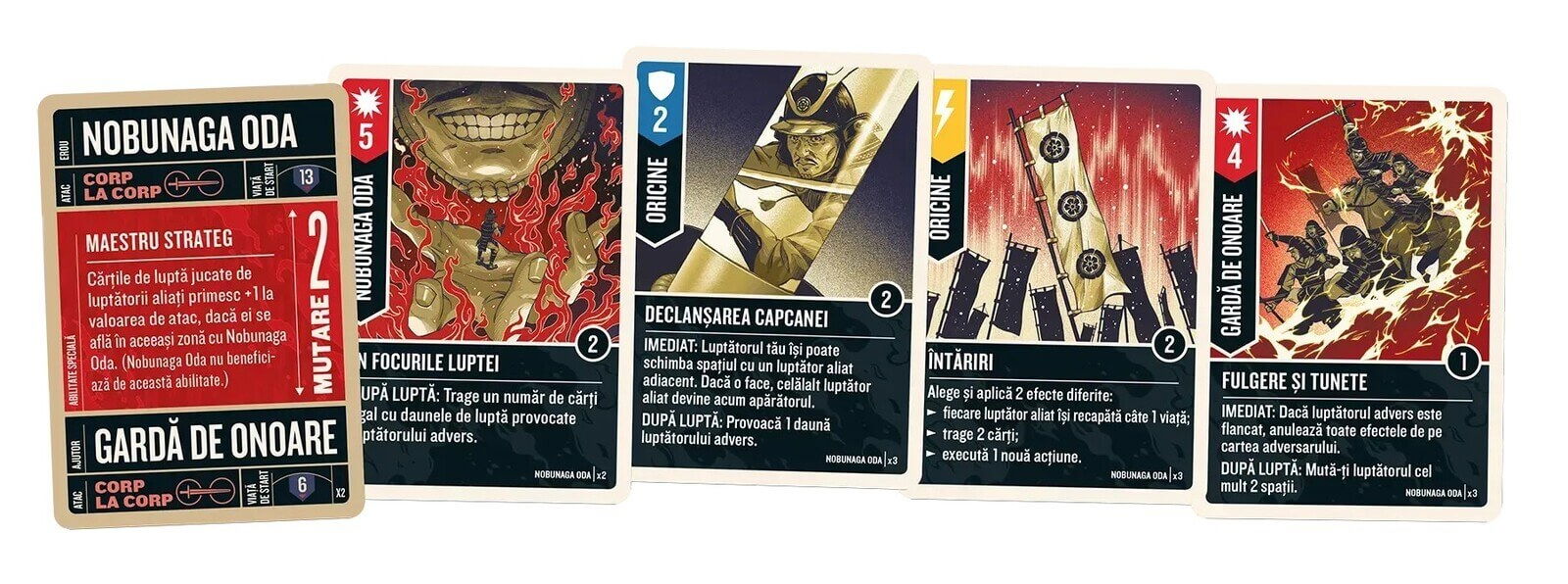 Jocul include doi eroi: Nobunaga Oda si Tomoe Gozen, fiecare cu propriul pachet unic de carti.
