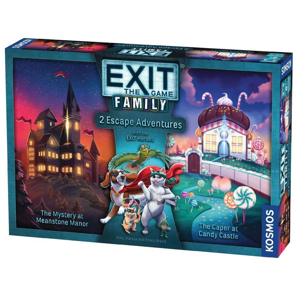 Exit: Family Heroes (EN) aduce seria EXIT intr-o forma complet noua, conceputa special pentru intreaga familie. Jocul include doua aventuri cooperative – The Mystery at Meanstone Manor si The Caper at Candy Castle – in care echipa de eroi, formata din animale curajoase, trebuie sa rezolve mistere, sa descifreze coduri si sa scape din situatii pline de suspans. Cu un ton amuzant, personaje simpatice si enigme potrivite pentru copii si adulti deopotriva, acest titlu transforma fiecare partida intr-o experienta de cooperare, deductie si distractie.