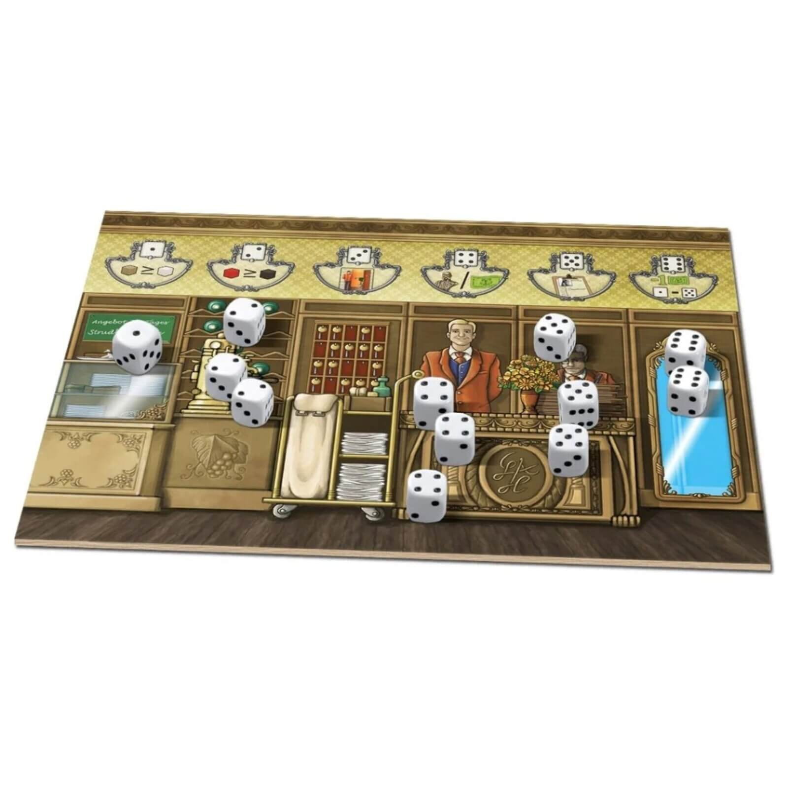 In Grand Austria Hotel (EN), jucatorii folosesc zaruri pentru a selecta actiuni precum recrutarea personalului, pregatirea camerelor sau servirea oaspetilor. In Grand Austria Hotel (EN), scopul este sa iti dezvolti hotelul cat mai eficient, sa gestionezi resursele si sa indeplinesti cerintele clientilor pentru a obtine puncte de victorie.