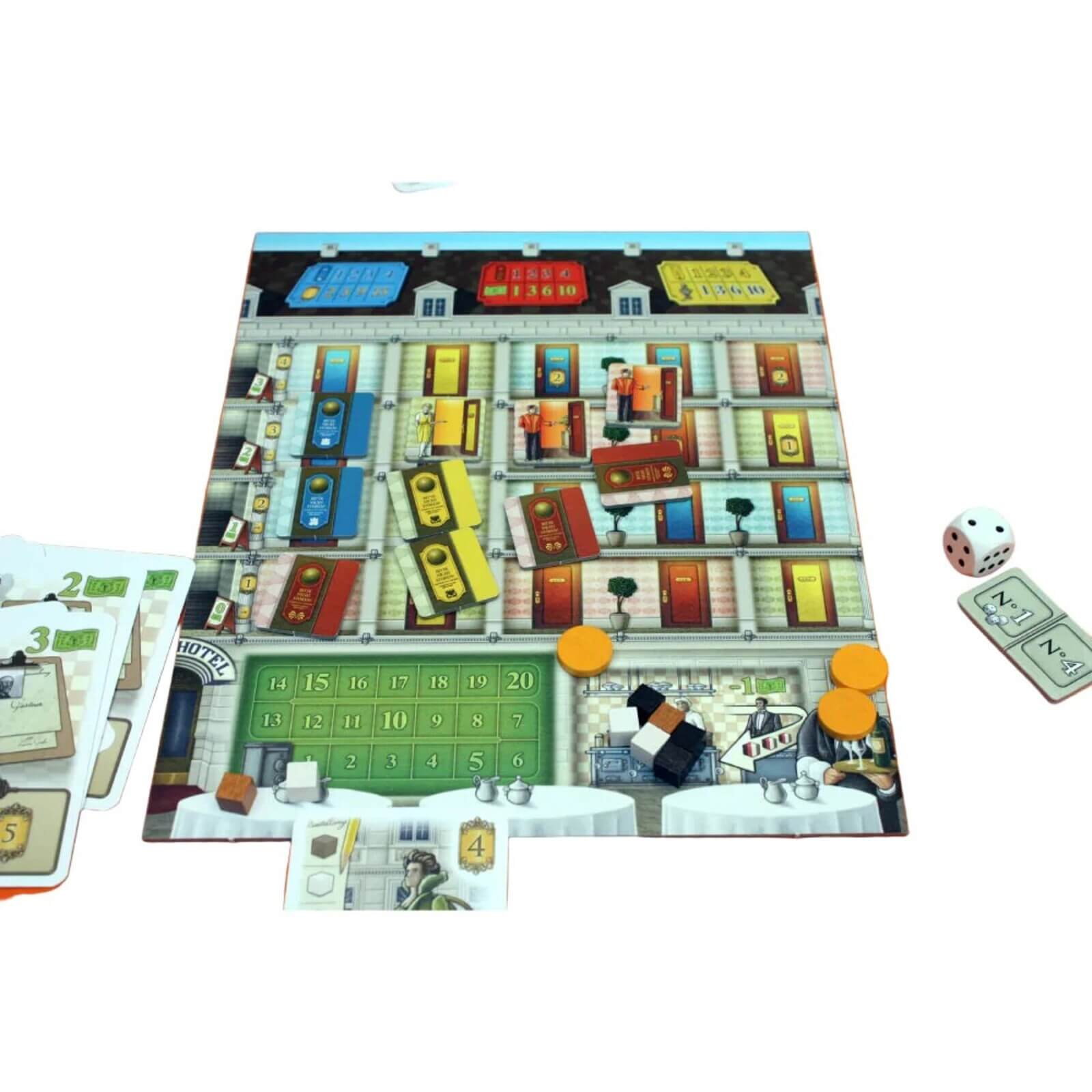 Jocul include 2 planse de joc, 4 table de hotel fata-verso, 9 piese turn order, 120 carti (56 guests, 48 staff, 12 politics, 4 overview), 84 room tiles, 120 cuburi din lemn pentru mancare si bautura, 12 emperor tiles, 14 zaruri, 24 discuri din lemn, 1 round marker, 4 markere de puncte si 1 regulament.