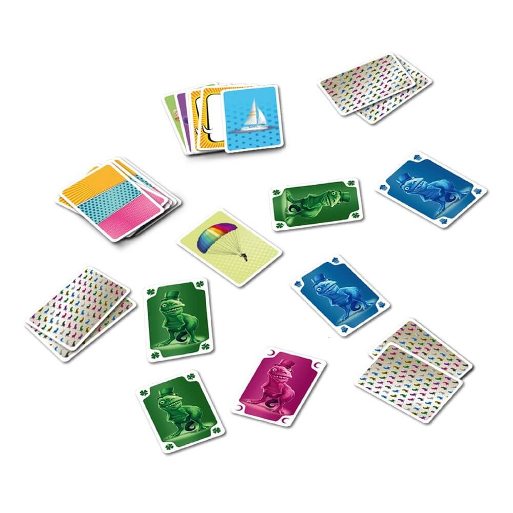 105 carti cu imagini, 39 carti cu texte, 56 carti colorate (8 pentru fiecare din cele 7 culori) si regulament in limba engleza