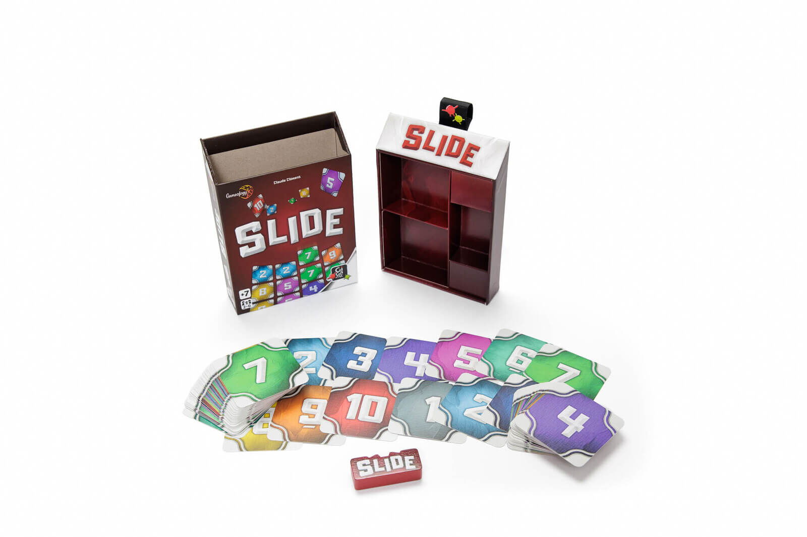 Slide (RO-EN) este un joc abstract inteligent, rapid si elegant, in care fiecare mutare conteaza. Jucatorii construiesc si modifica simultan o grila comuna de carti numerotate, incercand sa obtina la final cel mai mic scor posibil. Regulile sunt simple, dar deciziile sunt tensionate, iar anticiparea mutarilor adversarilor este esentiala.