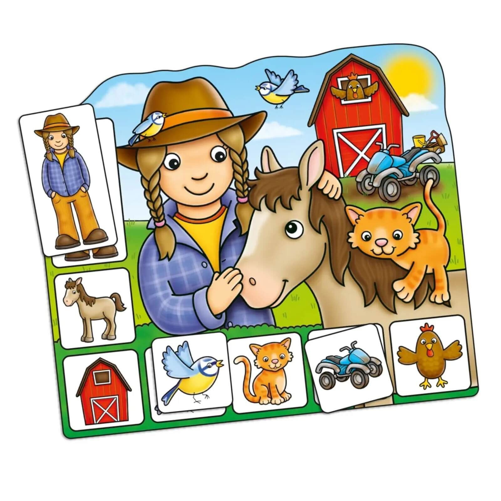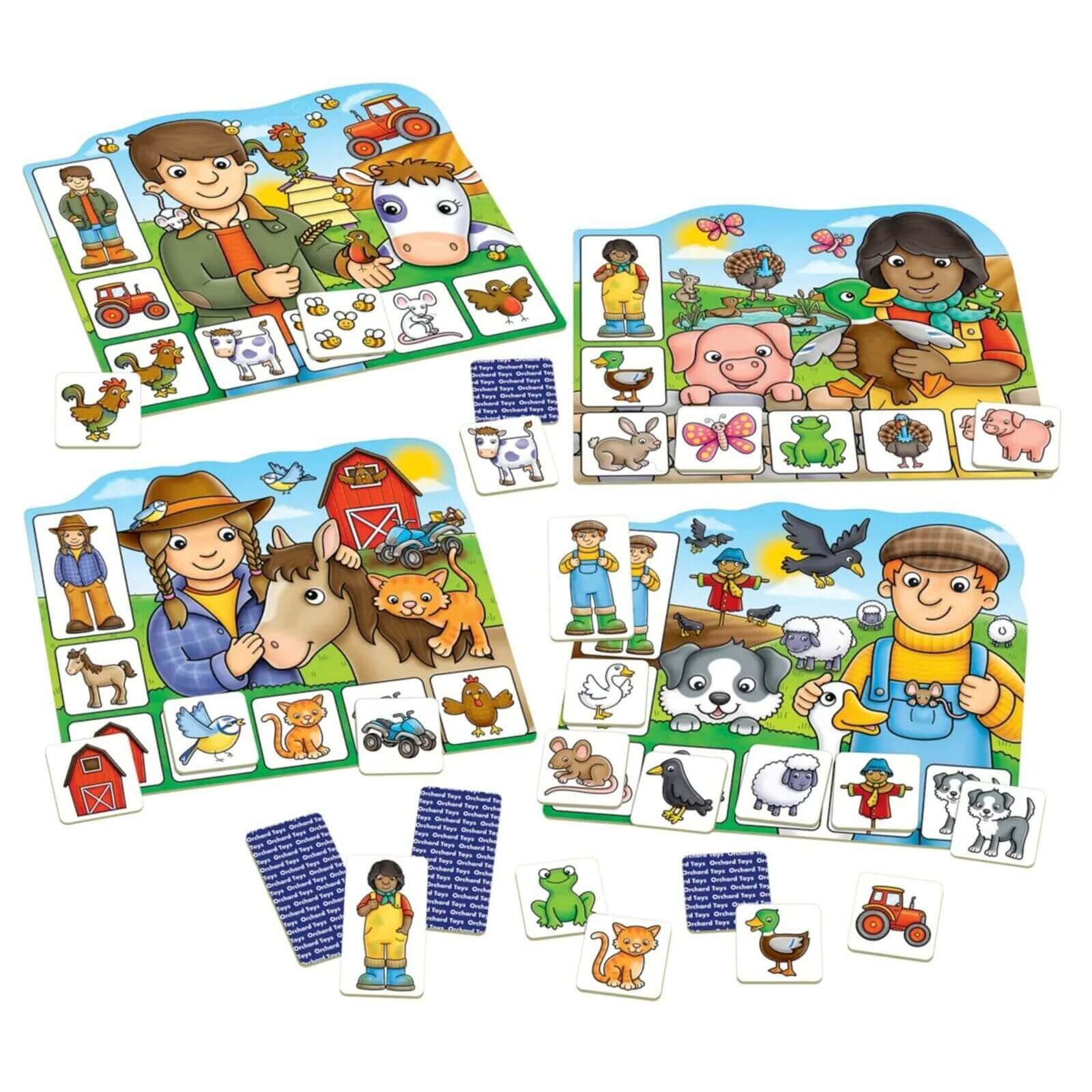 Prin ilustratii prietenoase si reguli accesibile, copiii descopera animale, personaje si activitati specifice fermei, invatand prin joaca si interactiune. Jocul incurajeaza observatia atenta, memoria vizuala si comunicarea, fiind ideal atat pentru joaca in familie, cat si pentru activitati educative in gradinite sau scoli.