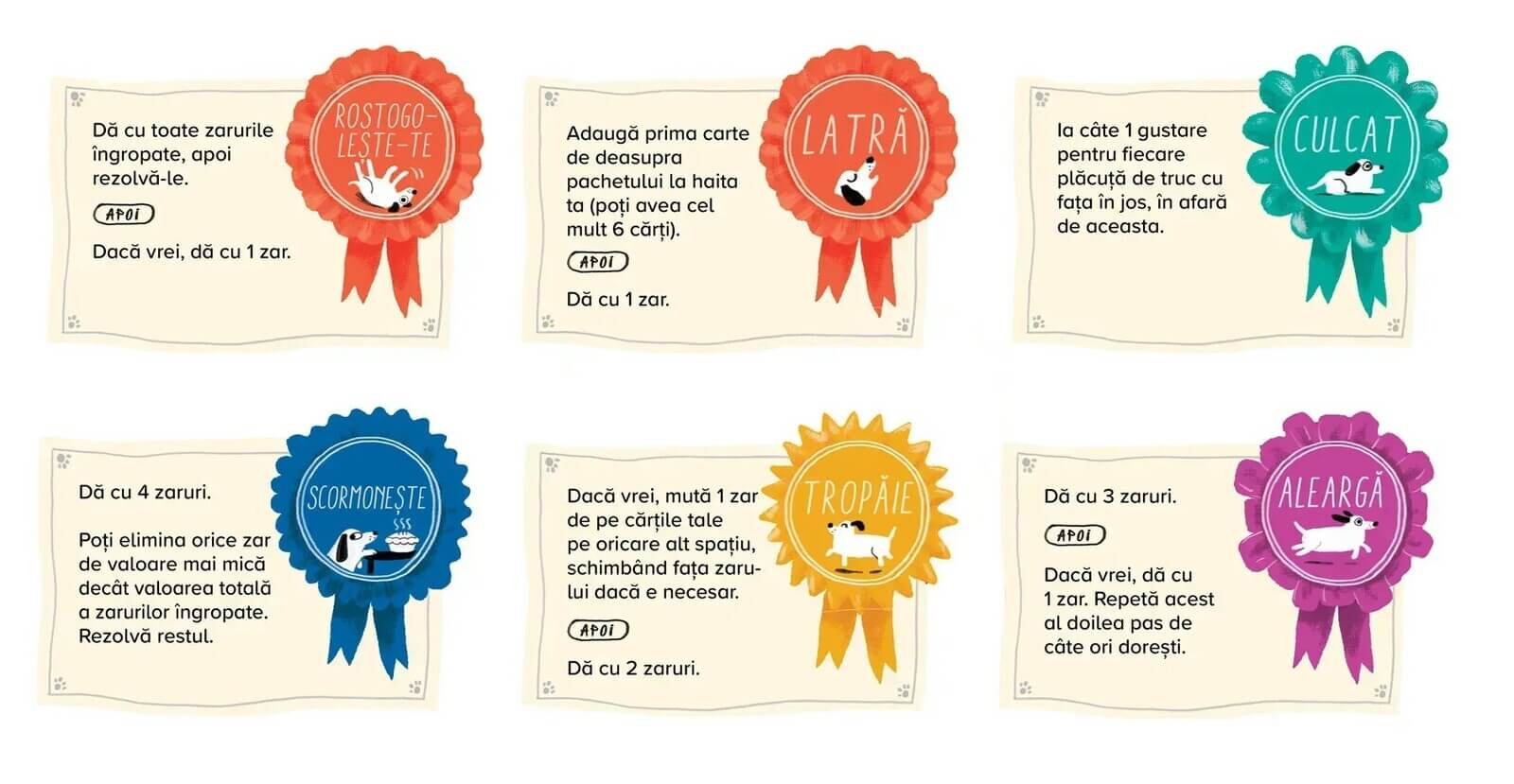 Primul jucator care reuseste sa dreseze caini de pe 6 carti castiga imediat partida.