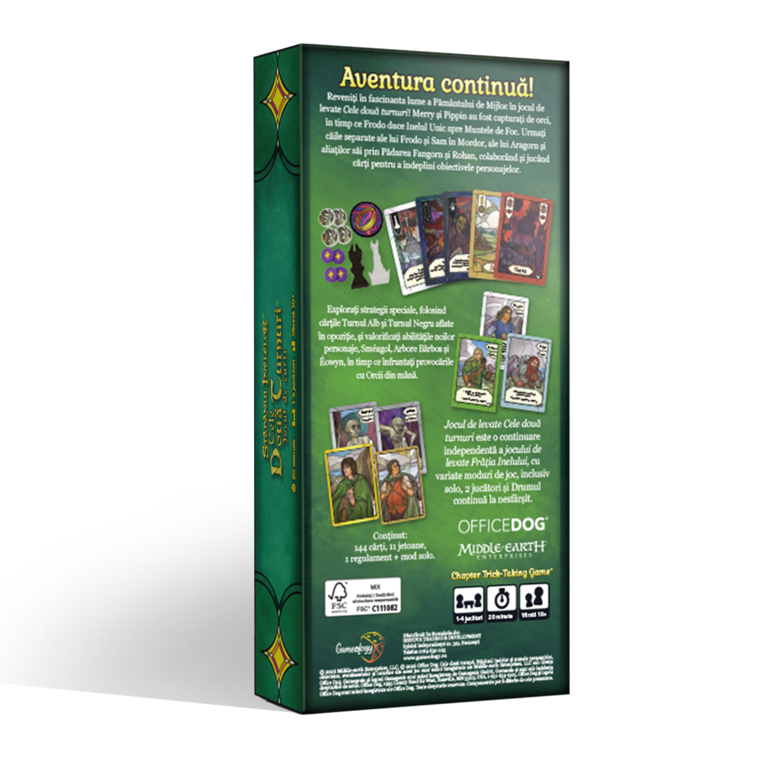 In Stapanul Inelelor - Cele Doua Turnuri (RO), fiecare capitol functioneaza ca un scenariu distinct, cu personaje, reguli speciale si conditii clare de victorie. Jocul foloseste sistemul clasic de levate, reinterpretat intr-o forma moderna si cooperativa, unde comunicarea este limitata, iar coordonarea echipei este esentiala. Deciziile luate la momentul potrivit, gestionarea cartilor speciale si intelegerea rolului fiecarui personaj fac diferenta dintre succes si esec.
