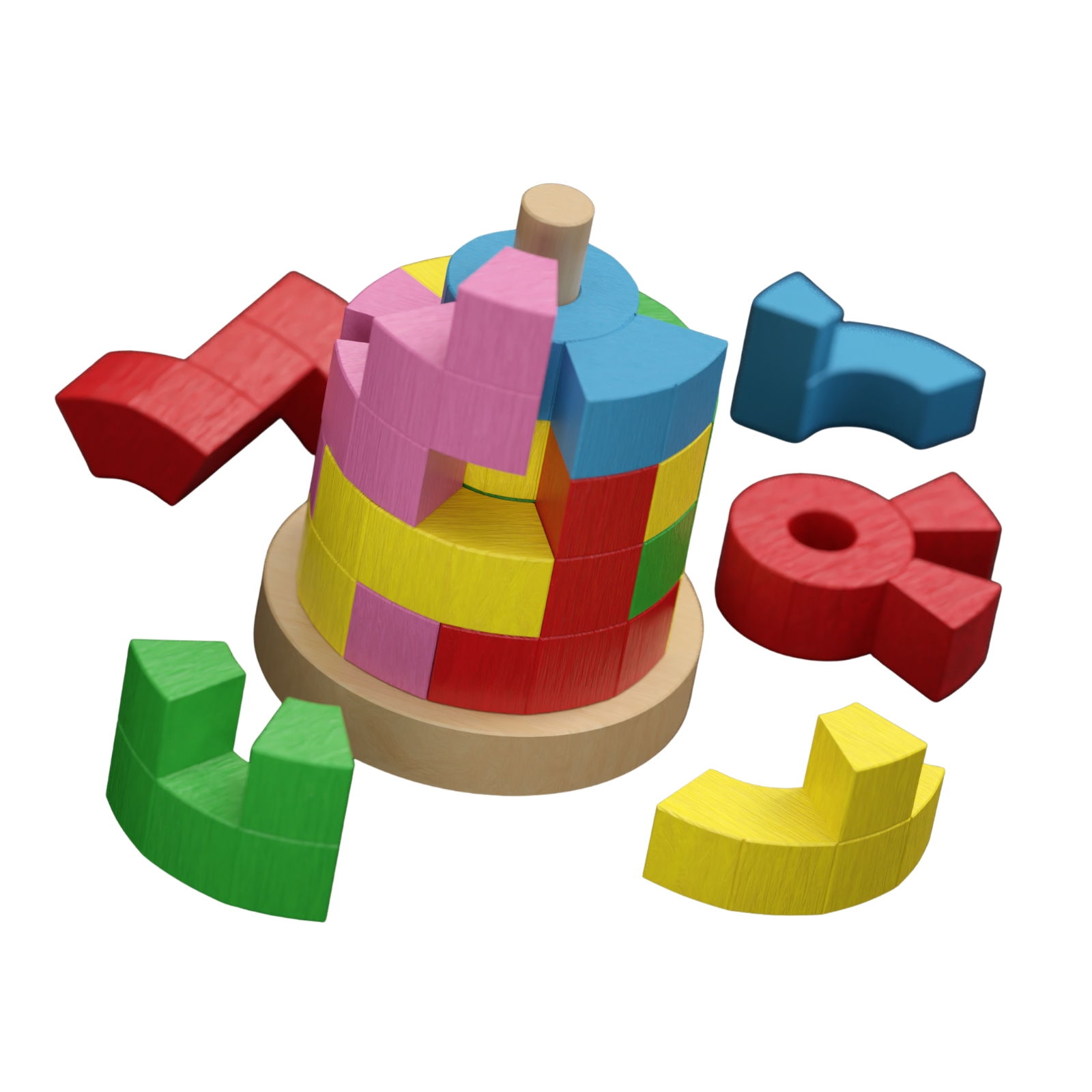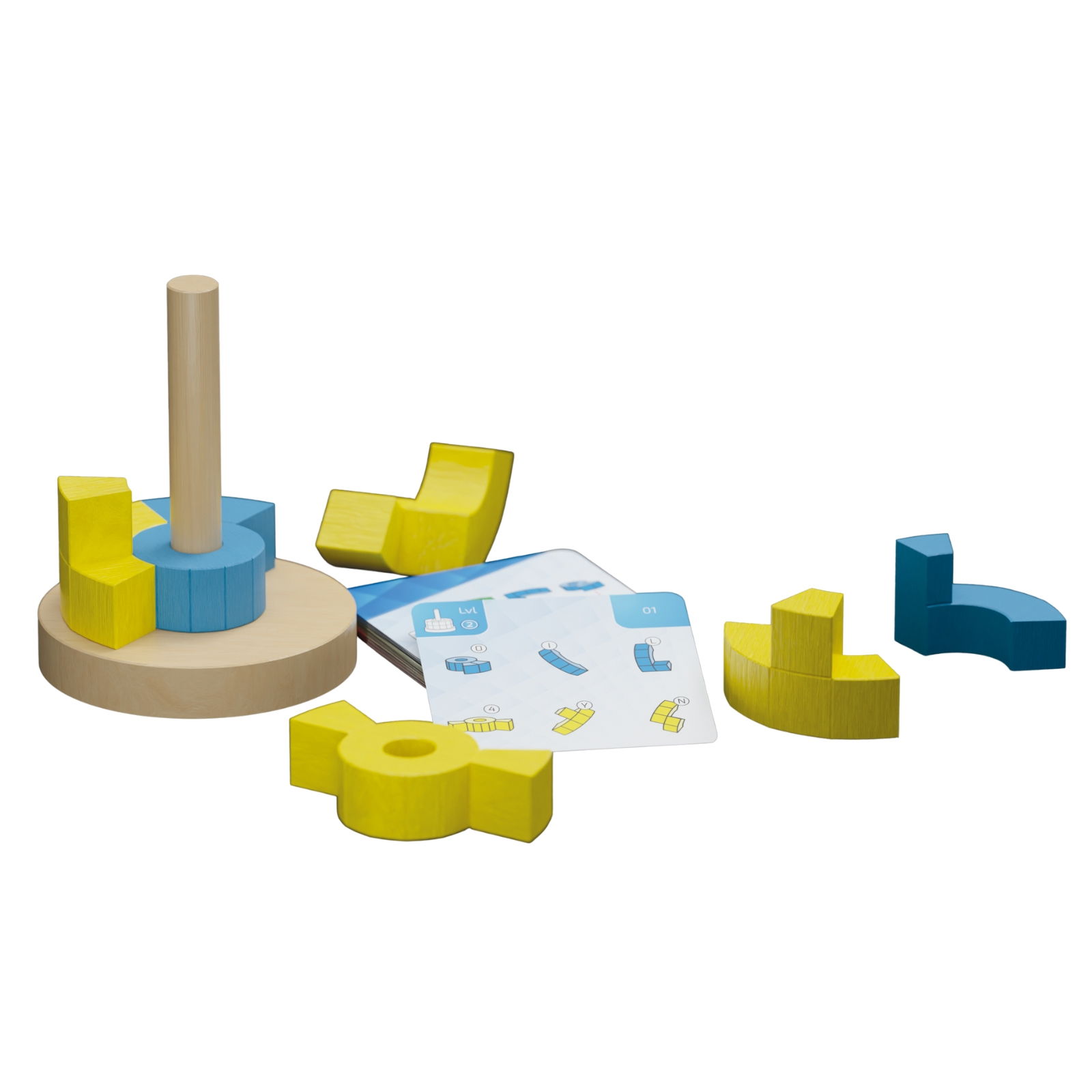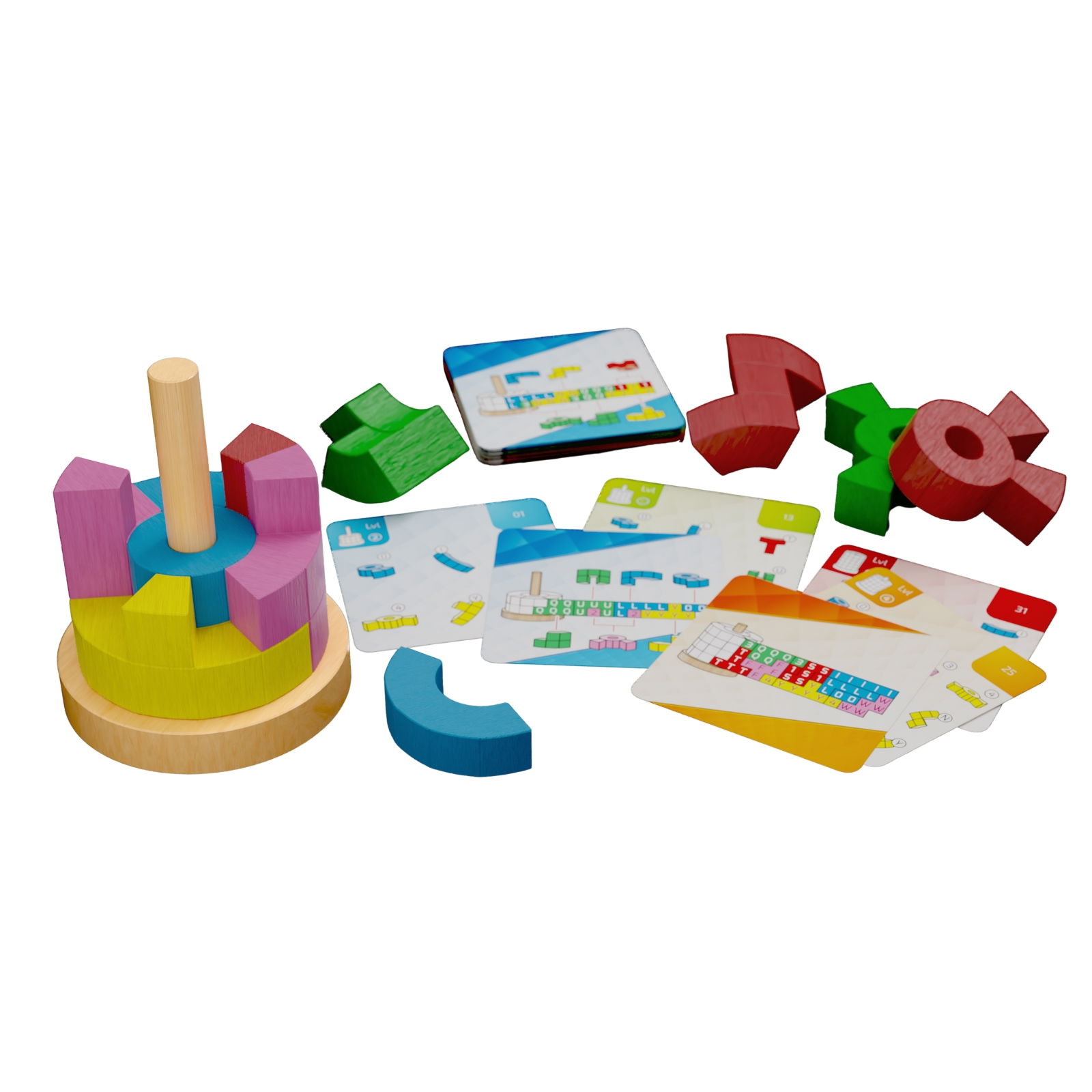 Cu 15 piese impartite in 5 seturi colorate, fiecare jucator trebuie sa gaseasca cele mai bune combinatii pentru a construi un turn cat mai inalt sau pentru a rezolva provocarile incluse in modurile de joc. Designul pieselor incurajeaza observarea formelor geometrice si imbunatateste abilitatile motorii fine.