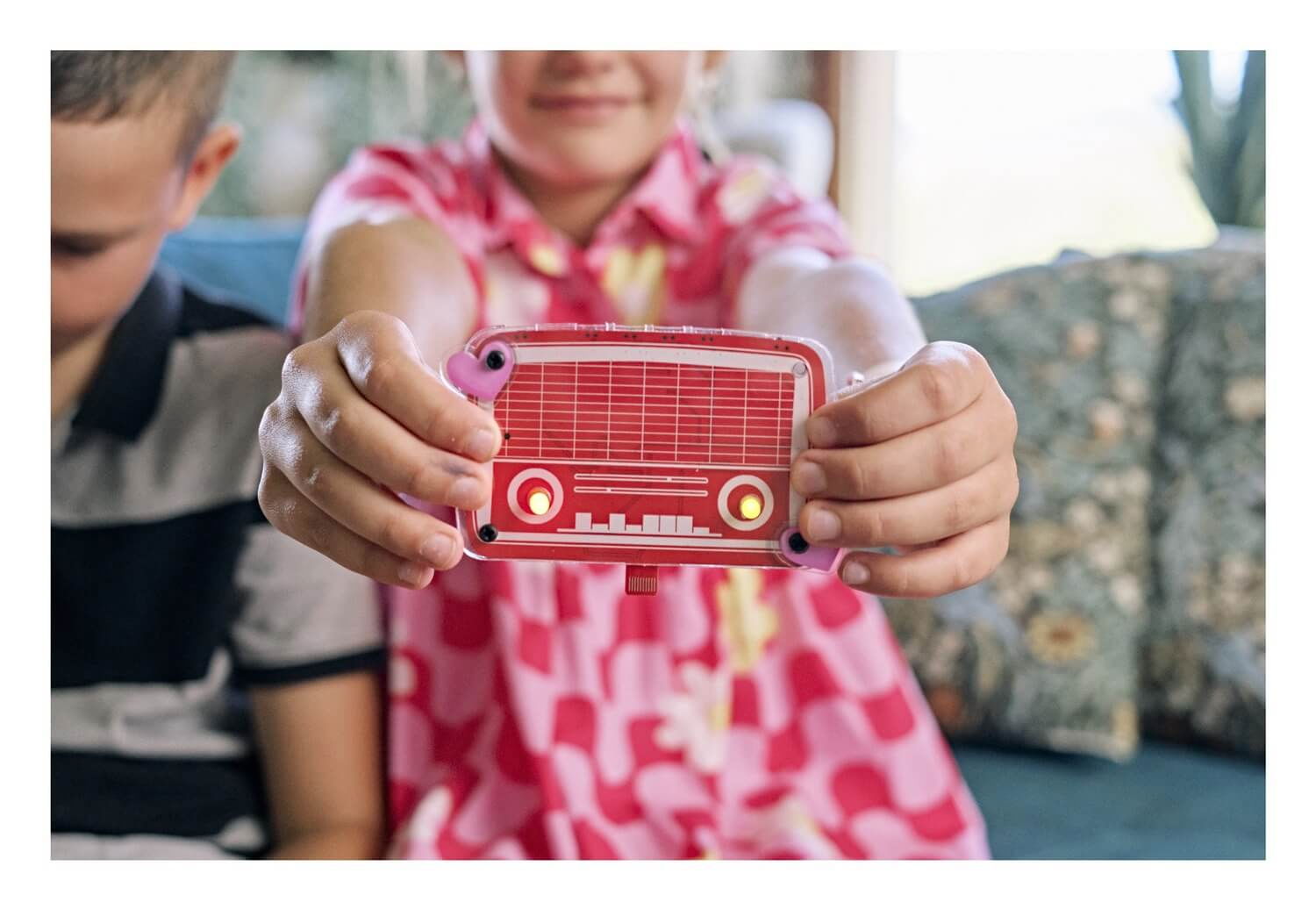 AVERTIZARE! Va sfatuim sa pastrati ambalajul pentru o utilizare ulterioara, deoarece contine informatii importante. Utilizati produsul strict sub supravegherea unui adult. Cititi cu atentie instructiunile inainte de utilizare, urmati-le si pastrati-le pentru o utilizare ulterioara. Inainte de a oferi unui copil acest kit electronic si educational, indepartati toate partile ambalajului, cum ar fi banda de protectie, foliile de plastic etc. Instructiuni de siguranta pentru baterie: Acest produs include trei baterii alcaline LR06 de 1,5 V AA. Bateriile incluse sunt destinate prezentarii produsului si vor trebui inlocuite in curand. Atunci cand inlocuiti bateriile, introduceti alte baterii noi de acelasi tip (baterii alcaline LR06 1,5 V AA) cu orientarea corecta a polaritatii bateriei. Bateriile trebuie inlocuite numai de catre un adult. Nu incarcati bateria de unica folosinta furnizata in acest kit! Bateriile reincarcabile pot fi incarcate numai sub supravegherea unui adult. Scoateti bateriile uzate din produs si aruncati-le in recipientele corespunzatoare. Atentie: Pericol de sufocare! Acest kit electronic nu este recomandat pentru copiii cu varsta sub 7 ani. Acest produs trebuie depozitat departe de copiii cu varsta sub 3 ani, deoarece contine piese mici. In cutie sunt furnizate instructiuni in limba engleza. Pentru instructiunile in limba romana, scanati codul QR de pe cutie. Cititi cu atentie instructiunile de siguranta pentru utilizarea produsului!