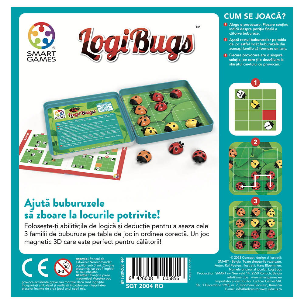Logibugs este un joc compact si usor de transportat, perfect pentru acasa, in calatorii sau pentru momentele de relaxare.