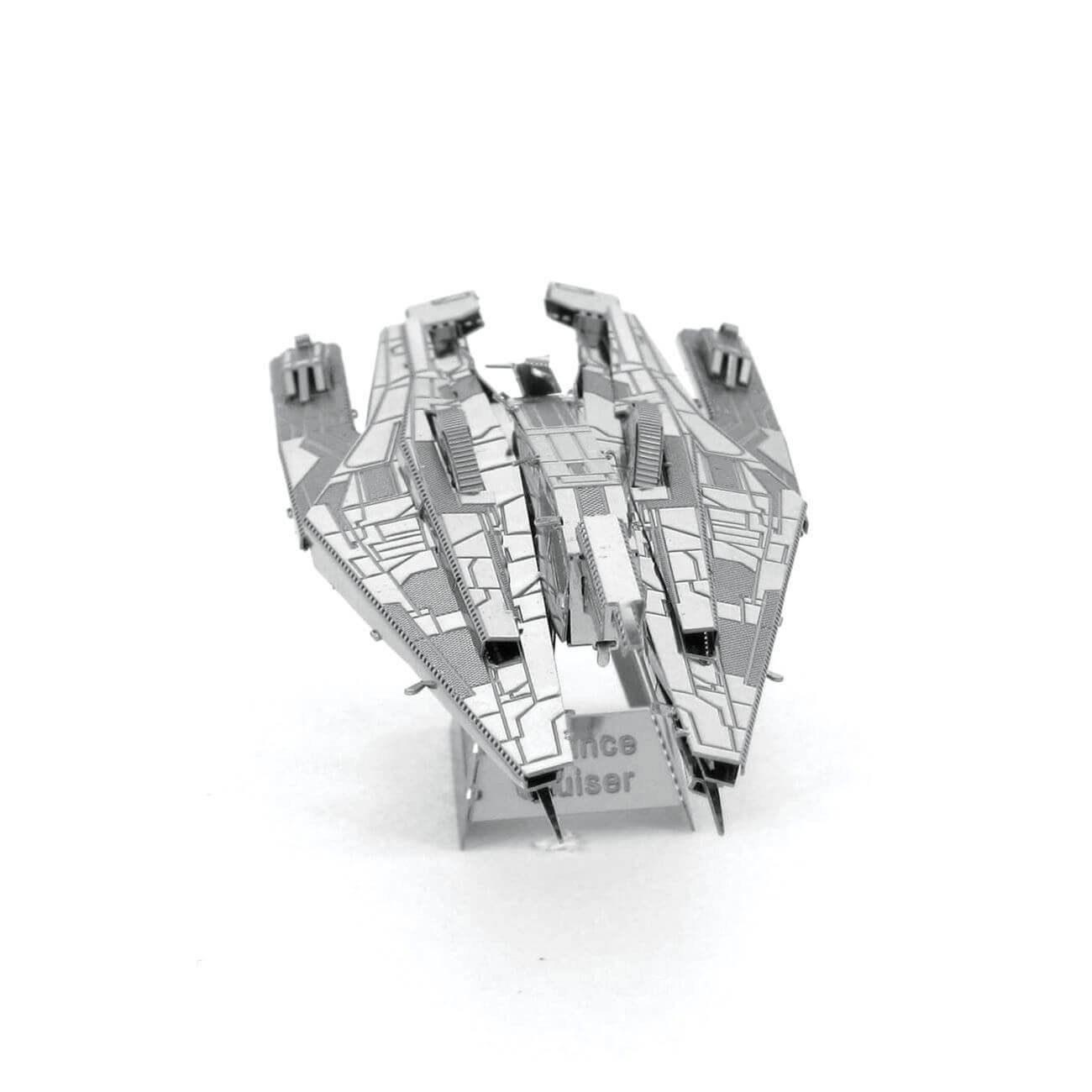 Macheta 3D Mass Effect - Alliance Cruiser include 1 foita metalica si instructiuni de asamblare pas cu pas. Foita de metal are o dimensiune de 11 cm si este prevazuta cu piesele componente ale acestei machete 3D, taiate cu un laser de mare precizie.