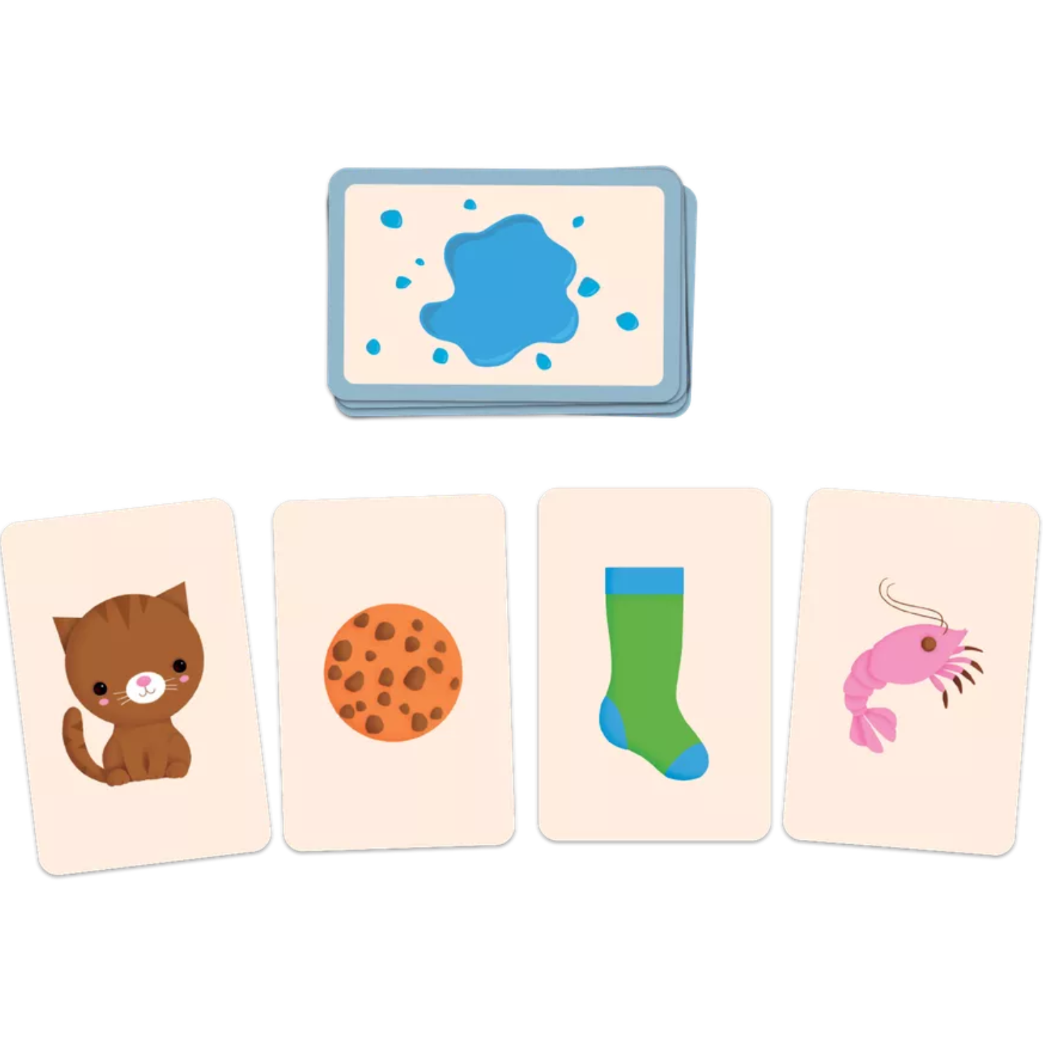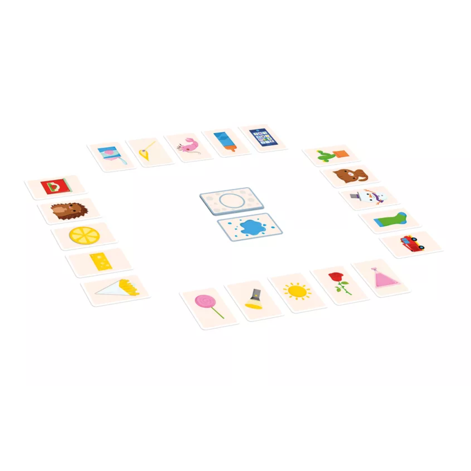Jucatorii, pe rand sau simultan, cauta asemanari intre propriile cartonase si cel din centru – simbol, culoare sau obiect.