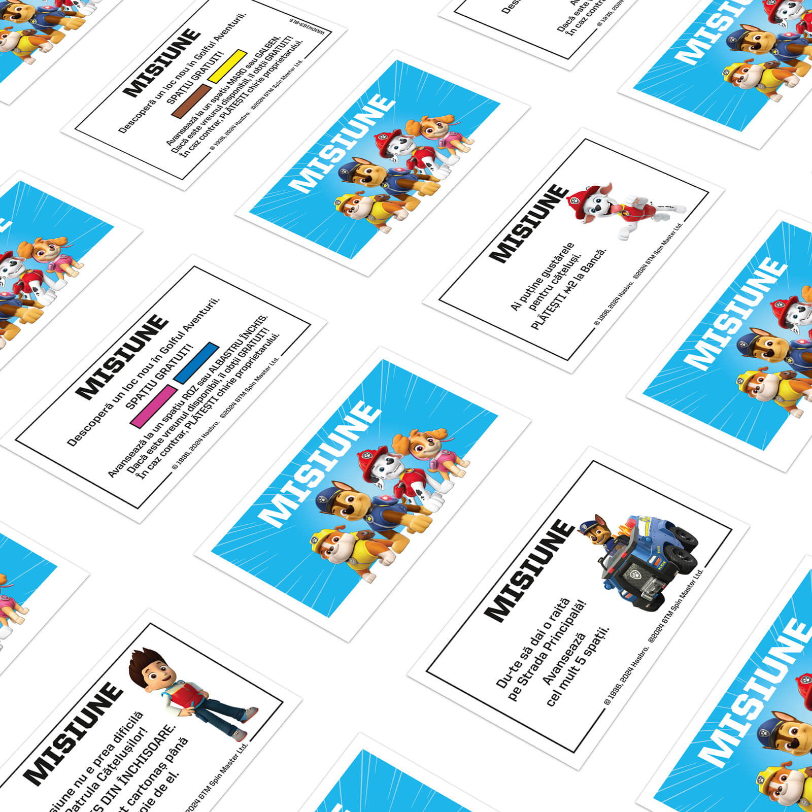 - Fiecare catelus are cate un cartonas Misiune special. In cazul in care isi va trage propria carte, va trebui sa o pastrezi pentru urmatoarea runda si sa traga din nou pentru a putea incepe jocul.