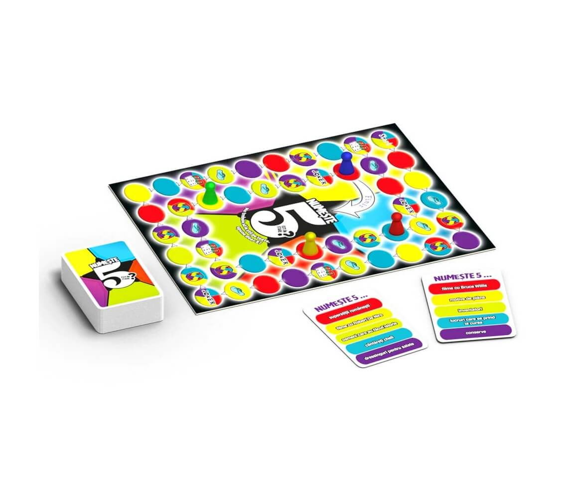 Numeste 5 (RO) este un joc distractiv destinat grupurilor mari de prieteni sau familiilor, care doresc sa creeze seri pline de rasete si competitie. Testati-va rapiditatea gandurilor, cunostintele generale, dar si abilitatile de asociere rapida a ideilor.