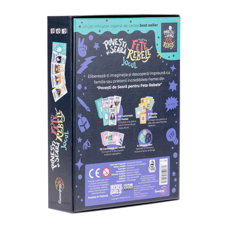 Povesti de Seara pentru Fete Rebele (RO) - Jocul este o activitate cooperativa, unde 100 dintre cele mai reprezentative figuri feminine din toate timpurile sunt ilustrate cu ajutorul cartonaselor si tu trebuie sa ghicesti despre care se discuta.