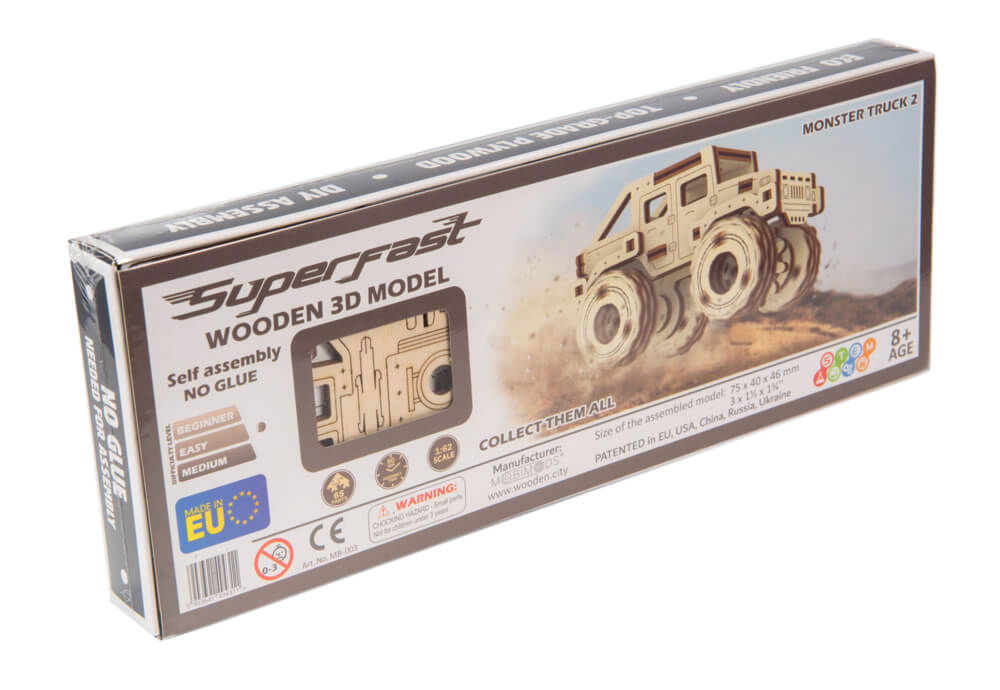 Puzzle mecanic 3D - Monster Truck 2 este confectionat din lemn ecologic, fiind sustenabil si prietenos cu mediul.