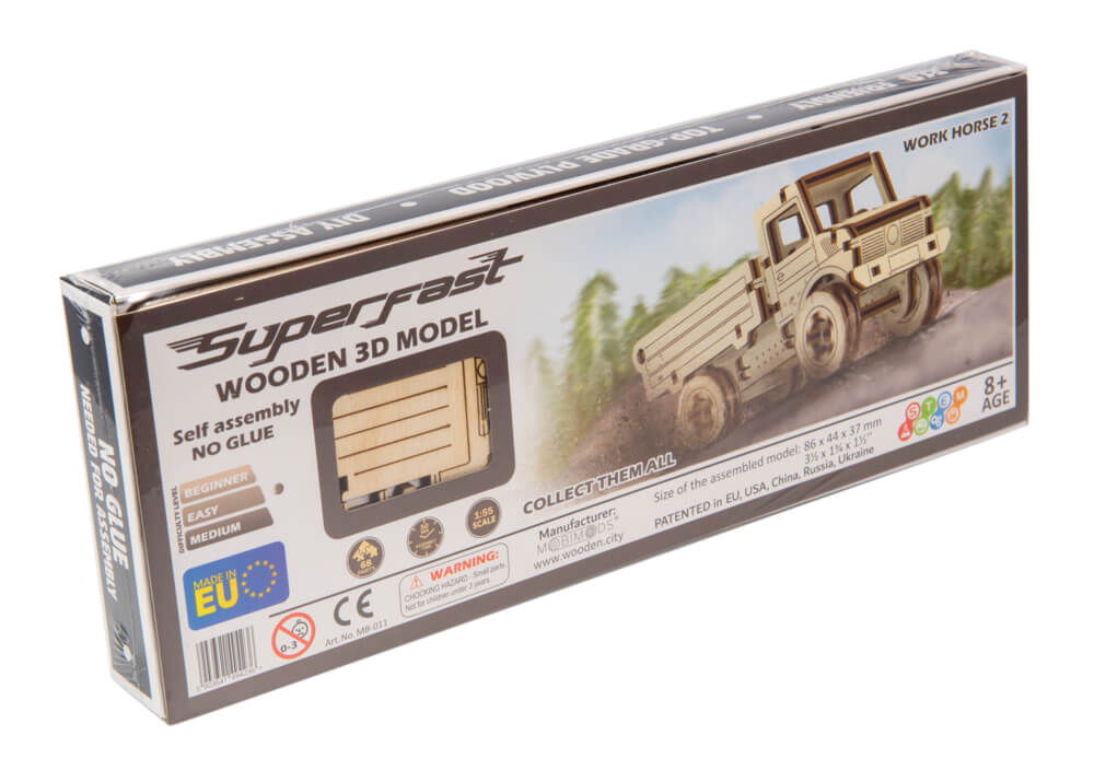 Puzzle mecanic 3D - Work Horse 2 este o replica mecanica din lemn, in miniatura, a modelului original care are abilitatea de a-si invarti rotile si de a parcurge mici distante. Nivelul de dificultate al asamblarii este redus, iar pentru acest proces nu este nevoie de lipici.