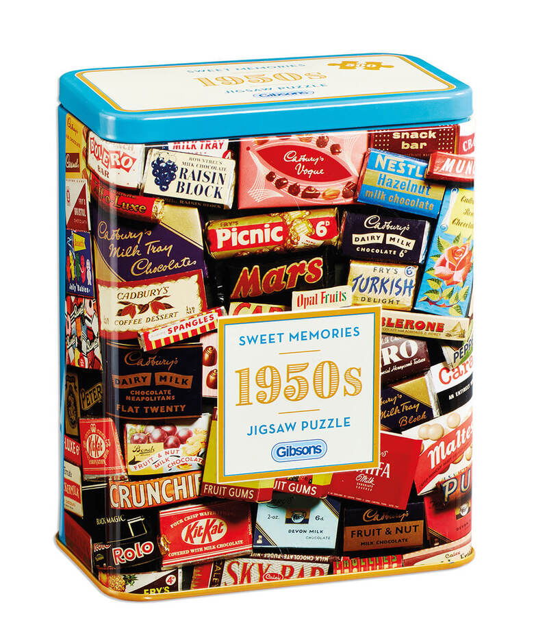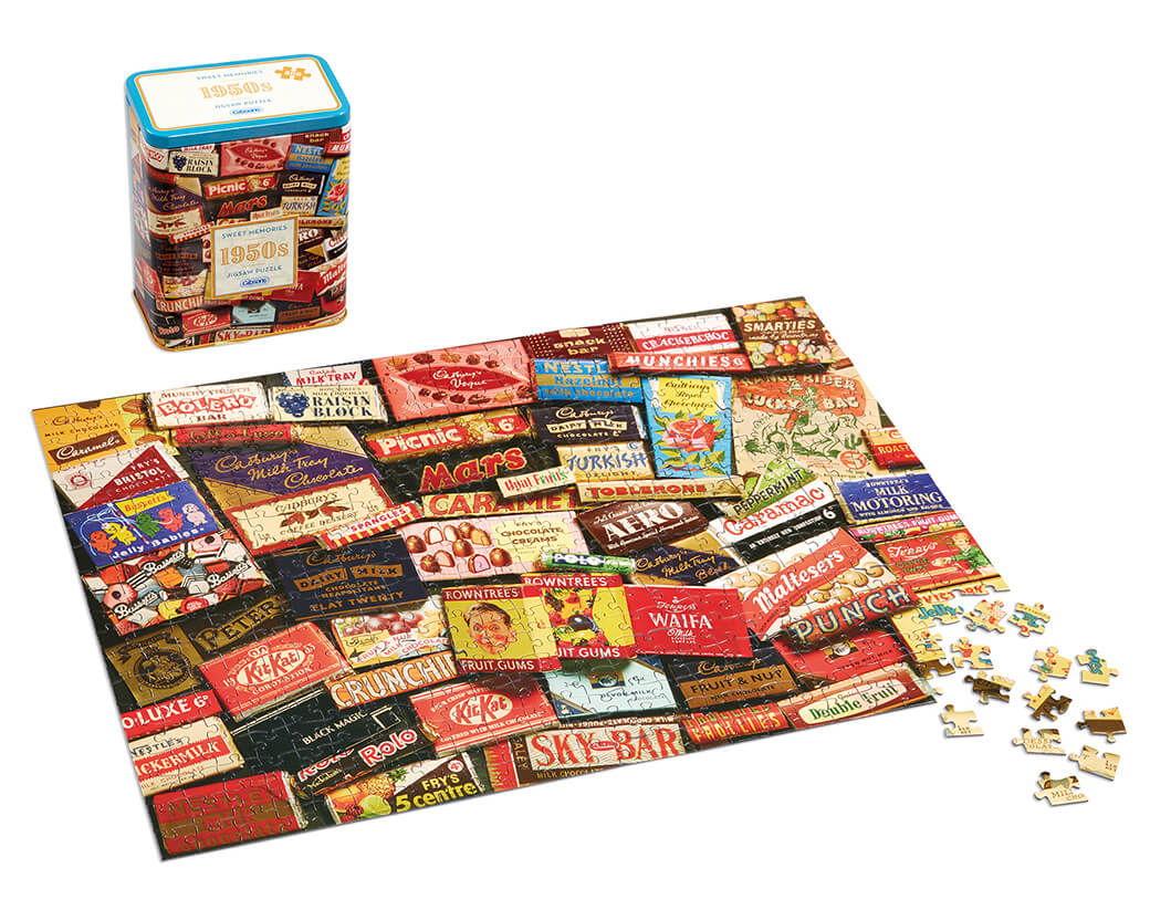 Acest Puzzle in cutie metal 500 piese - Dulciurile anilor 1950 ilustreaza cele mai indragite dulciuri ale decadei respective. Construind puzzle-ul, vei descoperi marcile de dulciuri, ambalajele si logo-urile de la acea vreme, observand si schimbarile care au avut loc intre timp.