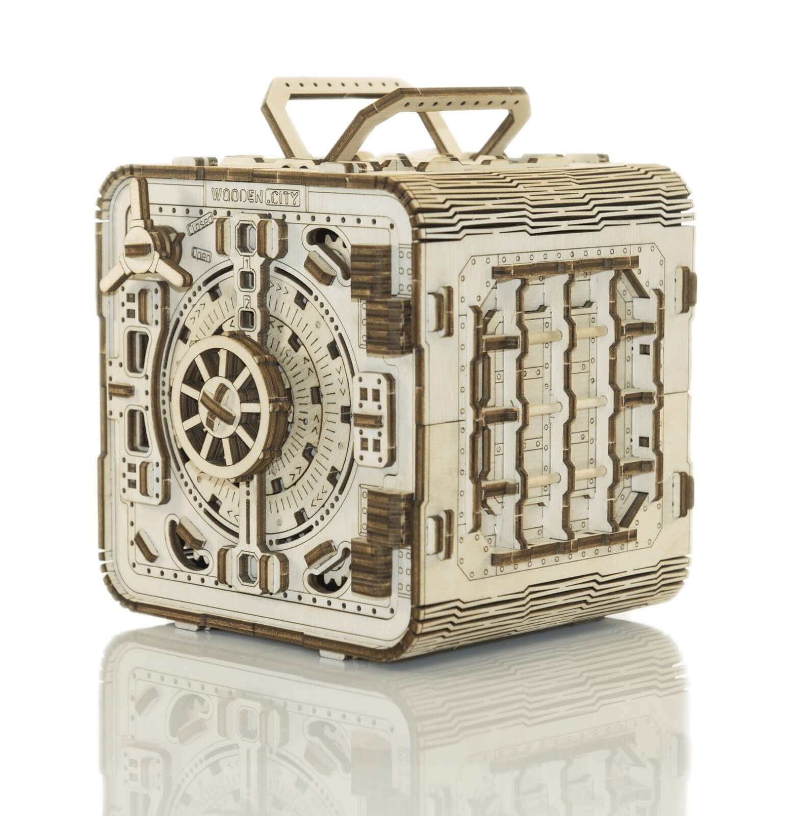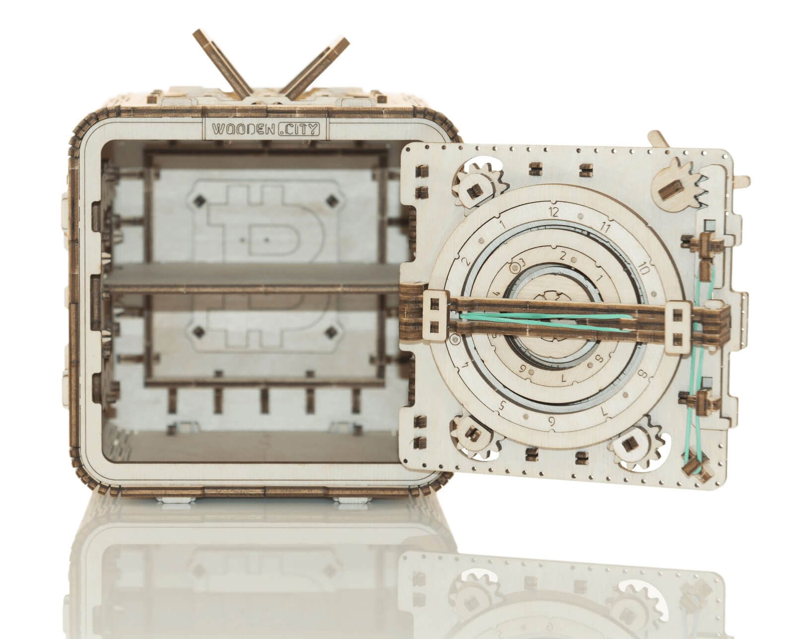 Puzzle-ul mecanic 3D - Seif este confectionat din lemn ecologic, o alternativa sustenabila si prietenoasa cu mediul. De asemenea, pentru asamblarea acestuia nu este nevoie de lipici.