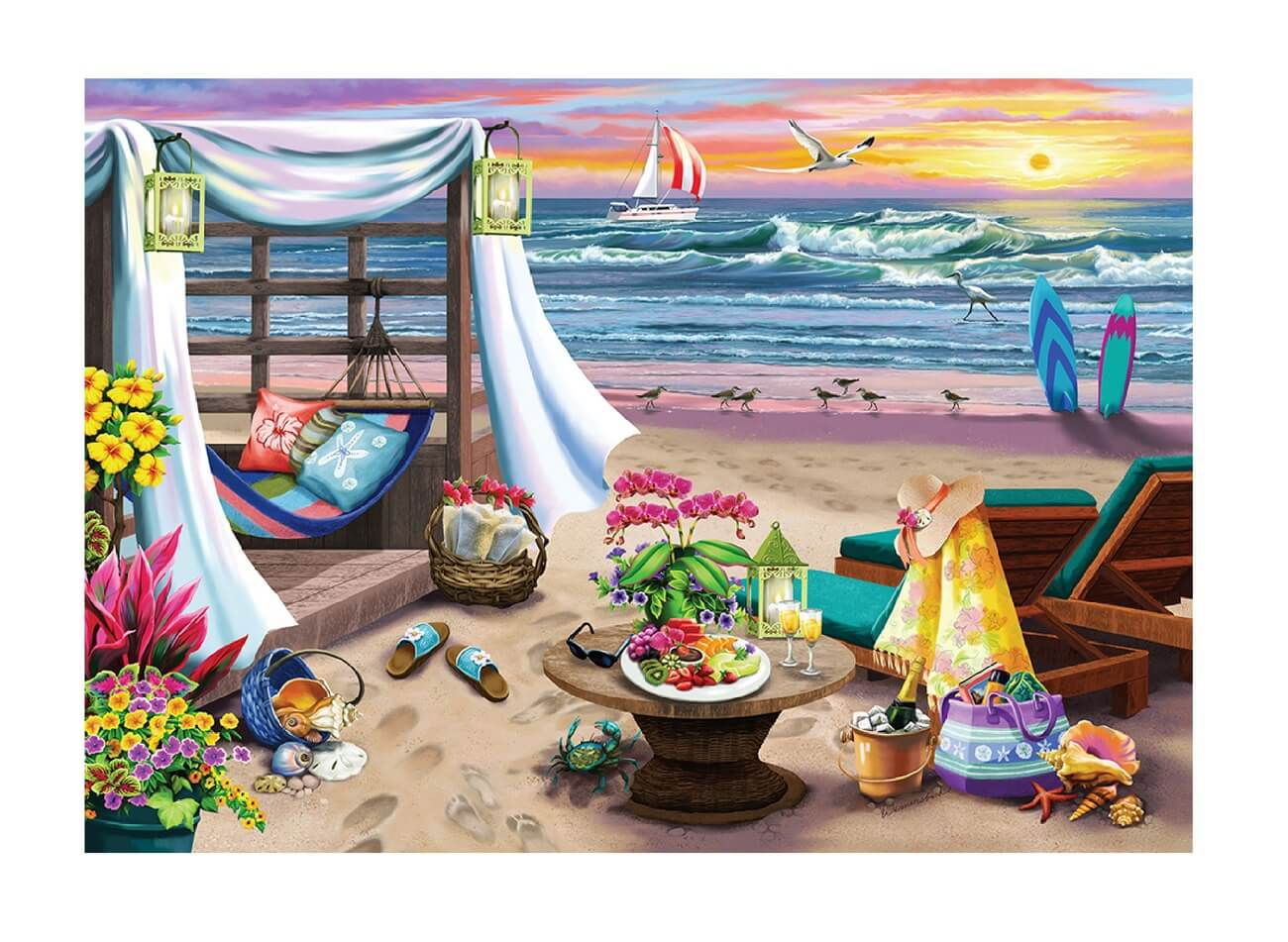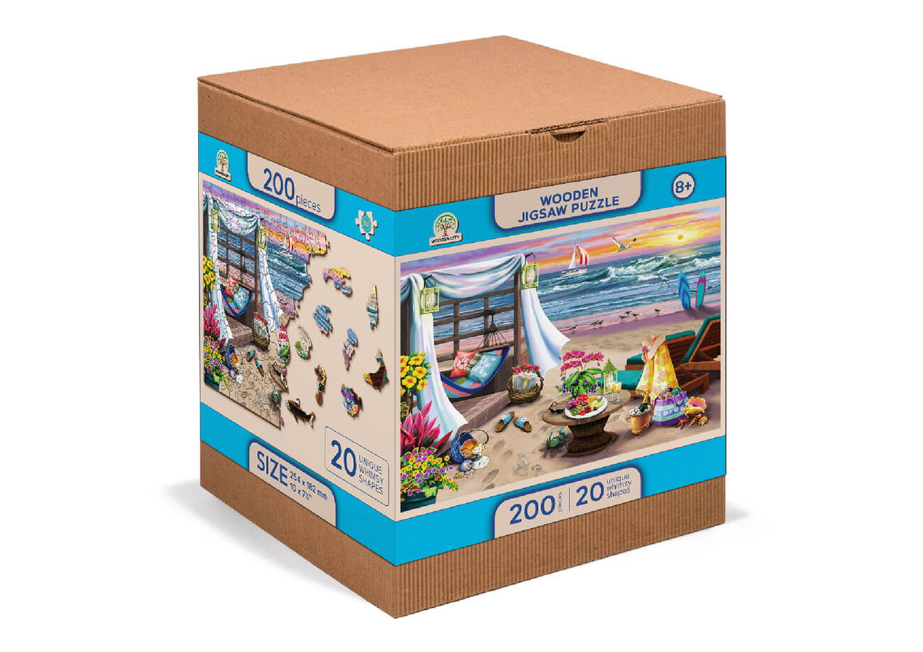 Bucurati-va de o zi de plaja ideala, exact cum v-ati fi imaginat-o doar cu acest Puzzle din lemn - Summertime - 200 piese!