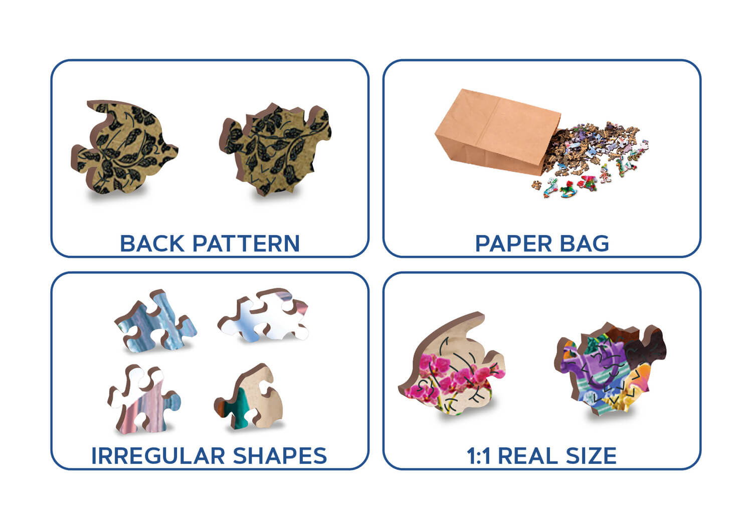 Puzzle din lemn - Summertime - 200 piese se diferentiaza de alte seturi prin forma neobisnuita a pieselor sale. Acestea nu se aseamana cu cele standard, ba chiar nu au prea multe in comun. Acestea sunt taiate si decupate cu ajutorul unui laser dintr-un placaj de mesteacan. Culorile folosite sunt cerneluri non-toxice in culori vii.