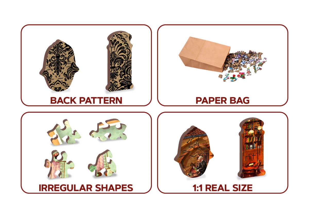 Ceea ce face acest Puzzle din lemn - Victorian Mansion - 200 piese cu adevarat special este cu siguranta unicitatea fiecarei piese. Acestea sunt departe de a semana cu formele standard, fiind decupate cu ajutorul laserului, dintr-un placaj de mesteacan. Vopsite cu cerneala in culori vibrante, sunt perfect sigure pentru cei mici.