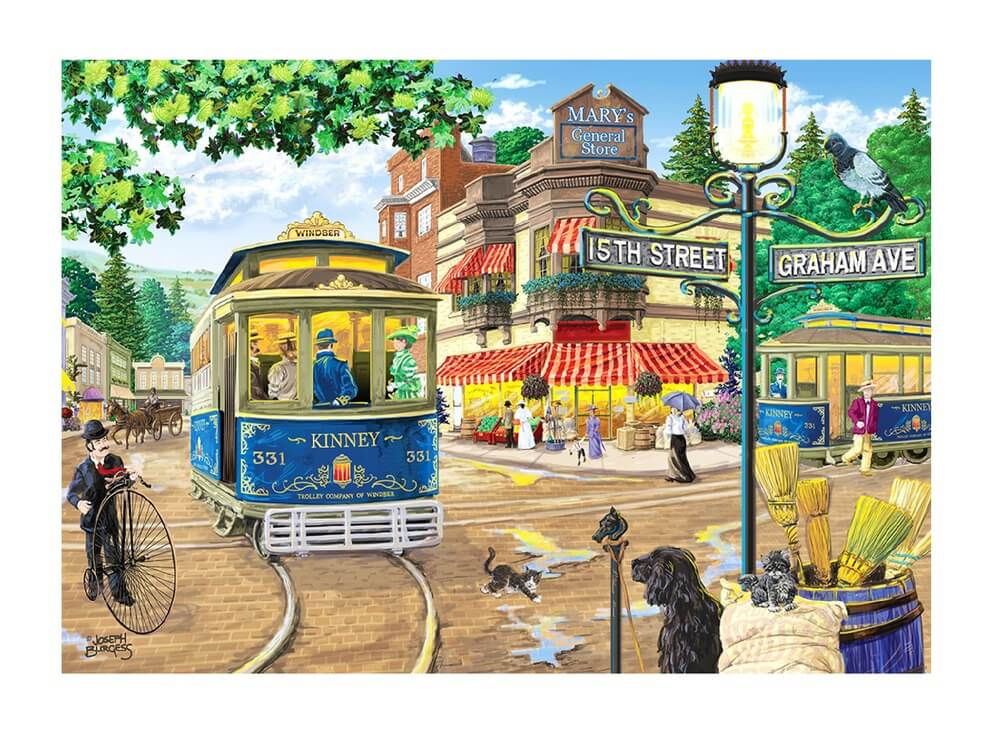 Puzzle din lemn - Victorian Mansion - 200 piese va va provoca inca de la primele piese! Studiati atent imaginea tramvaiului, a magazinelor si detaliile de pe cladiri pentru a desavarsi mozaicul!