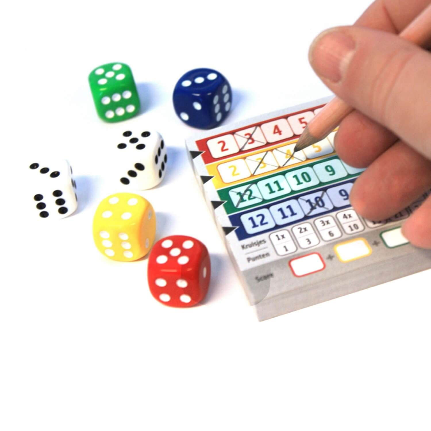 6 zaruri, 1 carnetel cu bilete de joc, regulament.