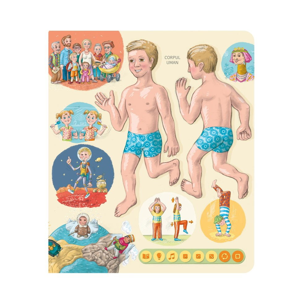 Ilustratiile colorate si limbajul accesibil ii ajuta pe cei mici sa inteleaga partile si sistemele corpului uman, pas cu pas. Pe fiecare pagina, cartea ofera instructiuni pentru miscare si exercitii fizice simple, incurajand atat invatarea, cat si dezvoltarea fizica. La final, copiii pot verifica ce au retinut, cu ajutorul testelor interactive si al momentelor de recapitulare.