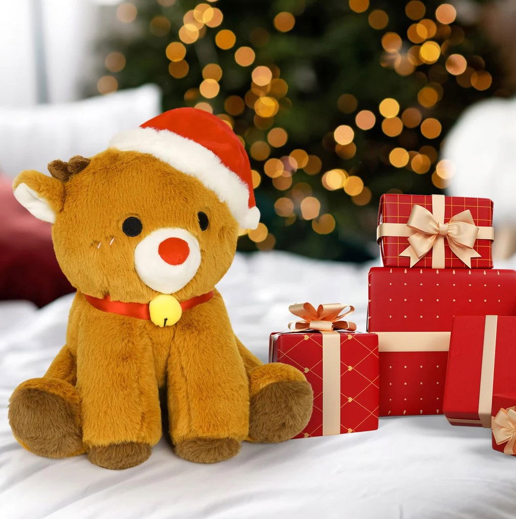 Renul este realizat din materiale de calitate, fiind sigur si confortabil pentru cei mici. Este cadoul perfect pentru a aduce zambete in preajma sarbatorilor sau pentru a completa colectia de jucarii de plus!