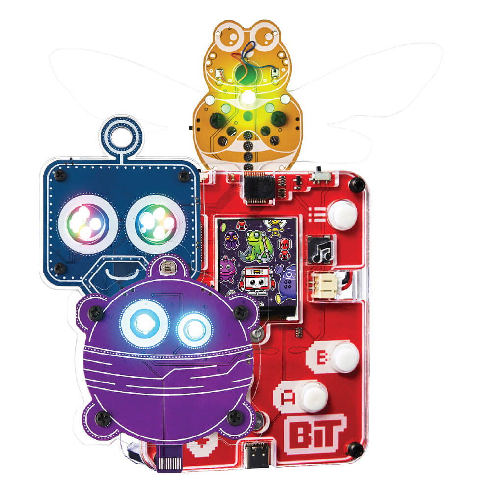 Cu ajutorul acestui set poti invata despre electronica si diferite componente electronice, Pixel Art si crearea de jocuri video, dar si despre programare. De asemenea, poti colectiona diferite modele din gama CircuitMess Adventure Wacky Robots, deblocand jocuri noi pentru consola de jocuri BIT! Fiecare robot Wacky vine cu un joc nou, dar și o altfel de abilitate.