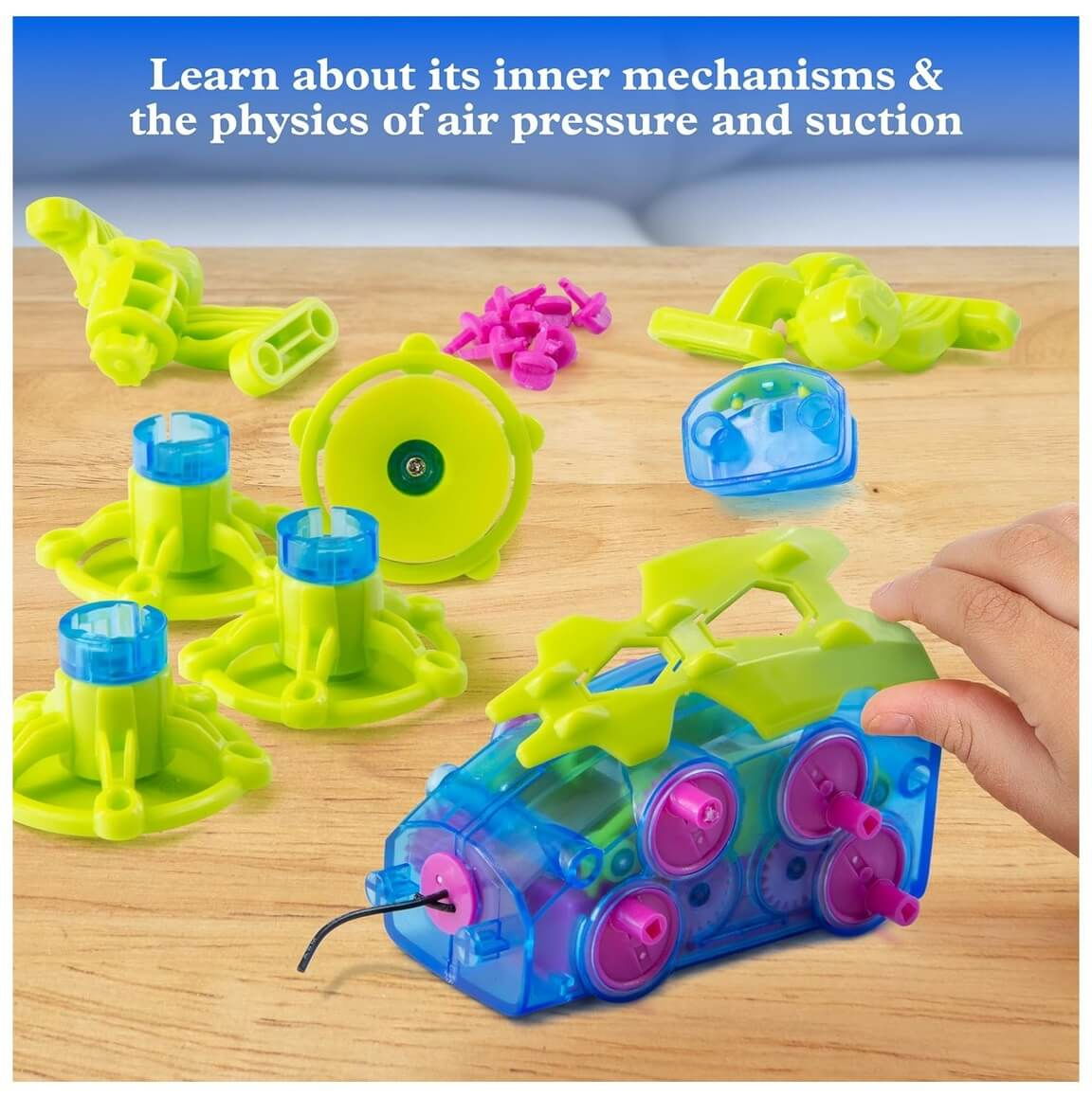 Pe masura ce il asamblezi, inveti despre forta vacuumului, echilibru si cum pot fi transformate concepte stiintifice in miscare reala. Manualul color inclus te ghideaza pas cu pas prin constructie si contine experimente suplimentare care transforma joaca intr-o experienta de invatare captivanta.