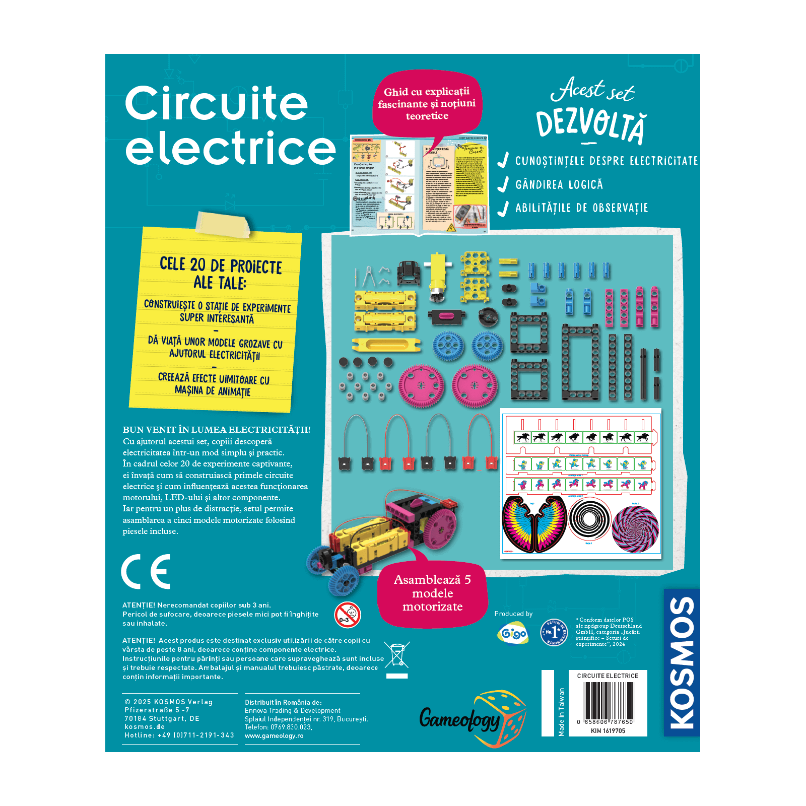 Cu ajutorul pieselor incluse si al statiei de experimentare, copiii pot realiza circuite simple si complexe, pot observa ce se intampla cand un LED se aprinde, un motor se invarte sau cand tensiunea se modifica. Fiecare activitate este insotita de explicatii clare si ilustratii pas cu pas, care faciliteaza intelegerea conceptelor precum tensiune, curent, intrerupator, flux de electroni si polaritate.