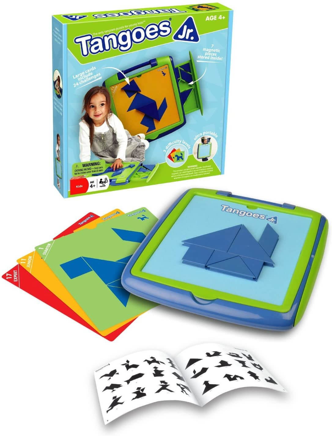 Descopera Tangoes Jr., un joc puzzle pentru copii in care sunt provocati sa realizeze 124 de forme diferite din 7 piese de puzzle magnetice!