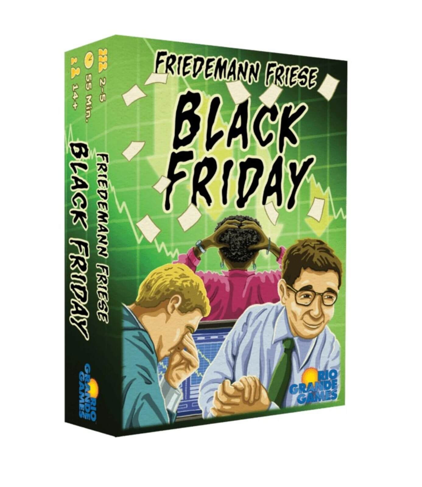 In Black Friday (EN), jucatorii investesc in diferite actiuni, incercand sa anticipeze evolutia pietei. Actiunile pot creste sau scadea in valoare in functie de tranzactiile realizate, iar scopul este acumularea de bani pentru a cumpara aur inainte de colapsul pietei. Jocul include un adversar automat, M.I.B.S. (minimally intelligent broker service), care poate fi folosit pentru a ajusta dinamica partidelor, mai ales la un numar redus de jucatori.