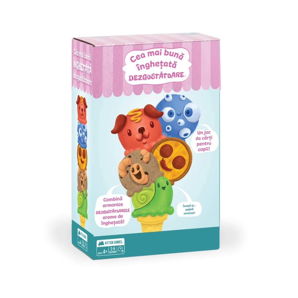 Cea mai buna inghetata dezgustatoare (RO) este un joc simpatic si plin de imaginatie pentru copii, in care aromele ciudate si amuzante devin ingredientele perfecte pentru un desert… cel putin discutabil. Jucatorii incearca sa construiasca cel mai neobisnuit con de inghetata, alegand aromele potrivite si incercand sa ghiceasca ce se ascunde in cartile mister.