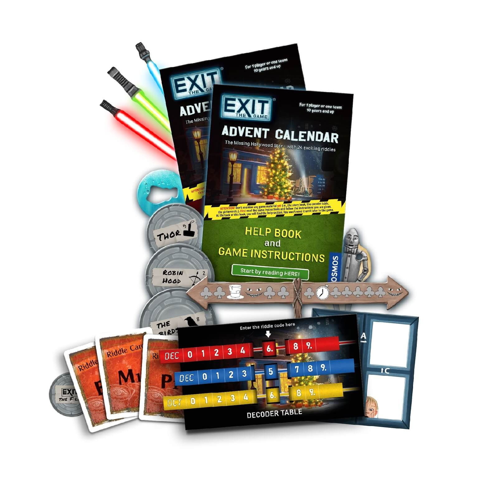 In Exit Advent Calendar: The Missing Hollywood Star (EN), jucatorii deschid cate o usa a calendarului in fiecare zi a lunii decembrie. Fiecare compartiment contine un puzzle logic si o parte din poveste. Solutiile zilnice iti arata ce usa trebuie deschisa in continuare si te conduc pas cu pas catre rezolvarea misterului. Obiectivul final este sa descoperi ce s-a intamplat cu vedeta disparuta si sa salvezi productia filmului de Craciun inainte ca timpul sa se scurga.