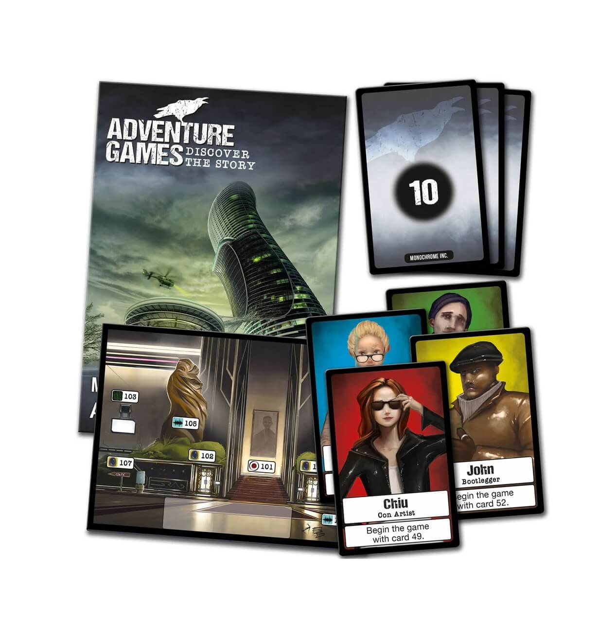 Adventure Games - Monochrome Inc (EN) contine 3 capitole, fiecare avand o durata de 90 de minute. Componentele acestuia nu sunt distruse pe parcursul jocului, asa ca se poate juca de mai multe ori.