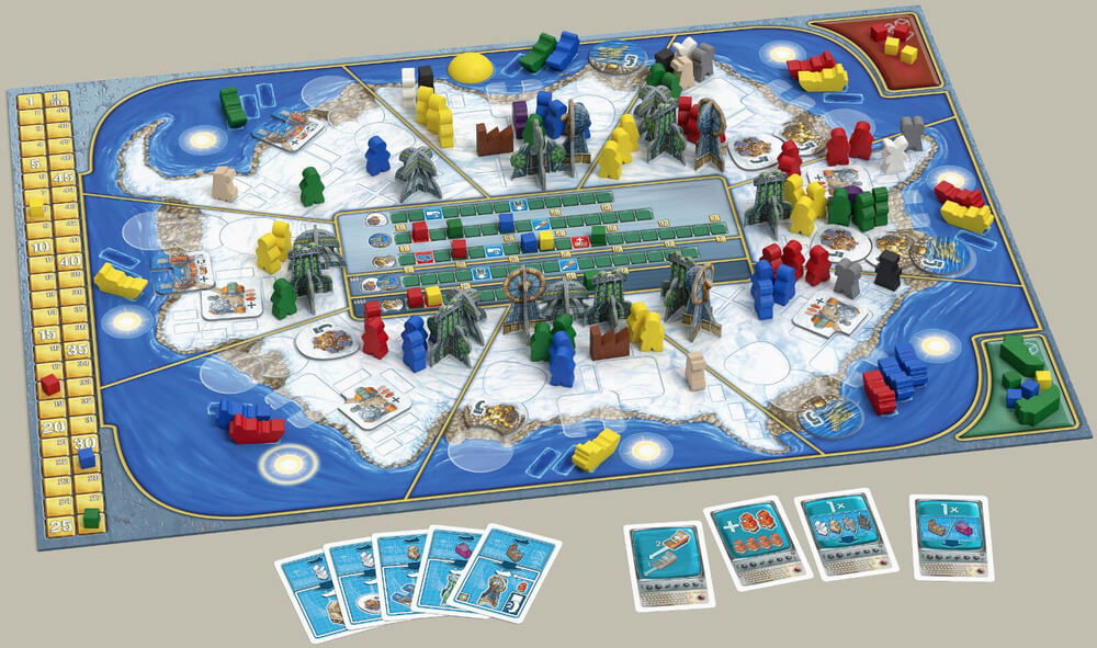 Centrele de cercetare din Antarctica (EN) ofera jucatorilor resurse pe baza carora pot obtine puncte de victorie. In momentul in care jucatorii isi finalizeaza operatiunea de explorare a Antarcticii prin construirea tuturor Cladirilor sau prin angajarea tuturor Oamenilor de stiinta, jocul se incheie. Jucatorul cu cele mai multe puncte de victorie este desemnat castigator!