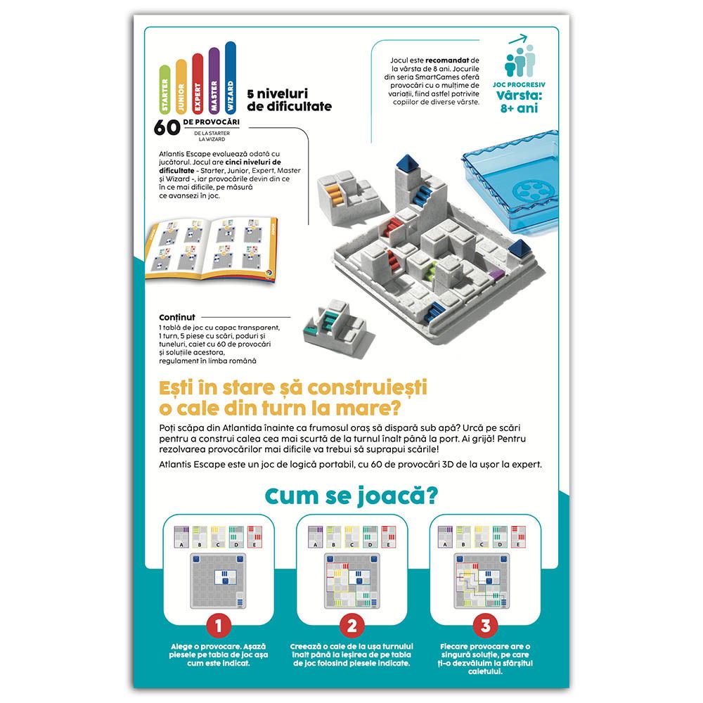 In Atlantis Escape vei construi cai de evadare din Atlantida, magnificul oras ce urmeaza sa se scufunde! Prin intermediul pieselor de puzzle, vei crea trasee formate din trepte, poduri si tuneluri pentru a ajunge in siguranta la port, unde te asteapta o barca pregatita de evadare. Plaseaza turnul pe tabla de joc, conform provocarii, si creeaza-ti traseul!